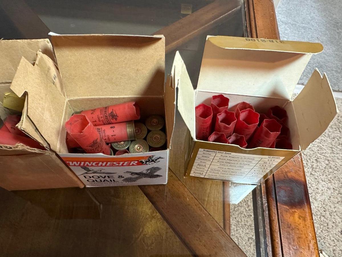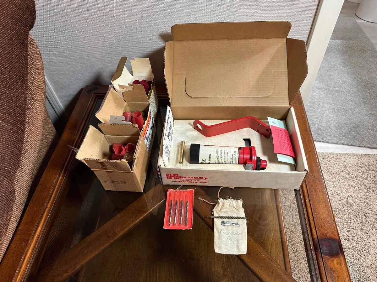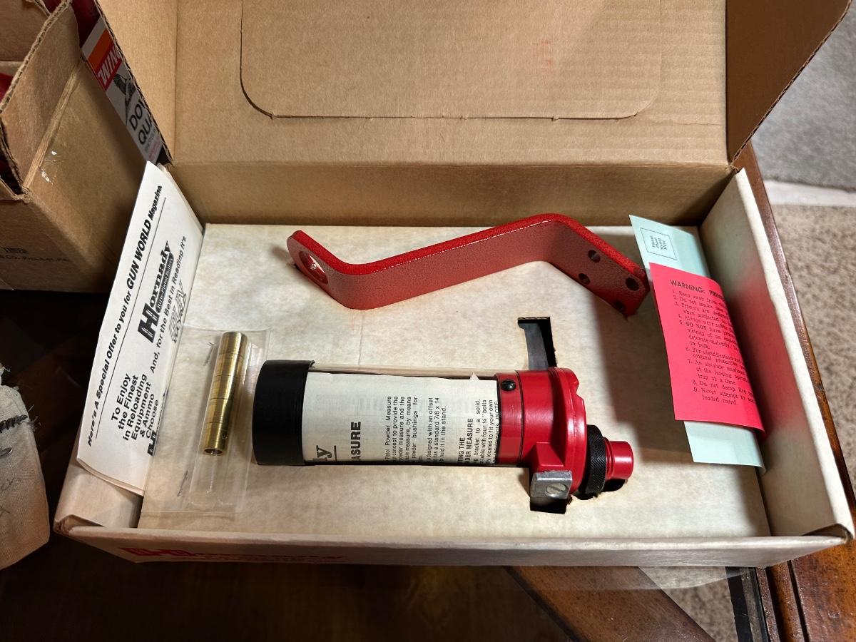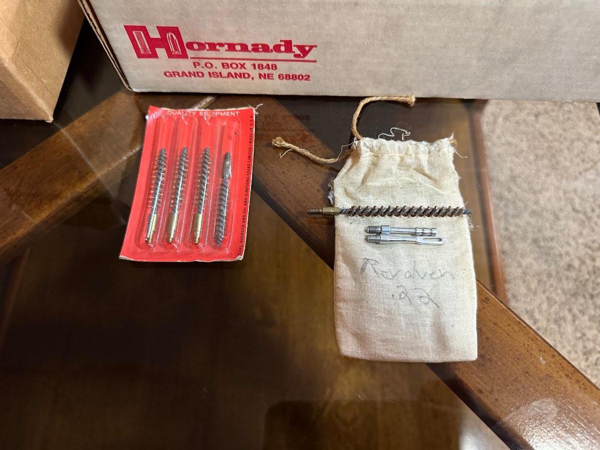 HORNADY PISTOL POWDER MEASURE FOR RELOADING, SPENT SHOTGUN SHELLS FOR RELOADING AND BORE CLEANING BRUSHES