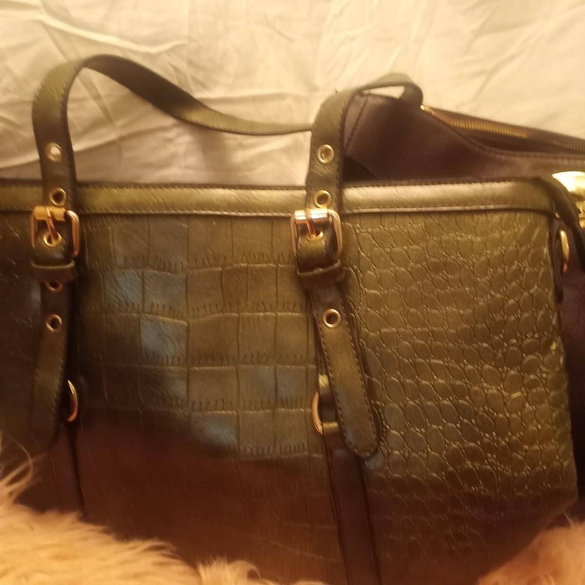 HORNBACK CROCO SATCHEL HANDBAG LEATHER WITH HORNBACK CROCO EMBOSS