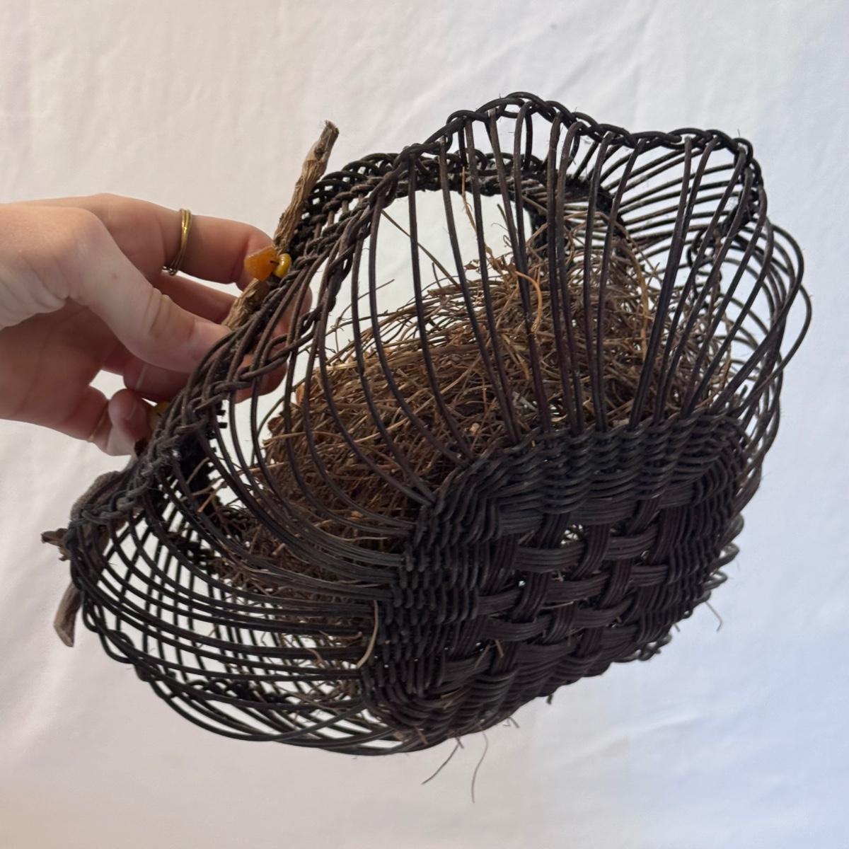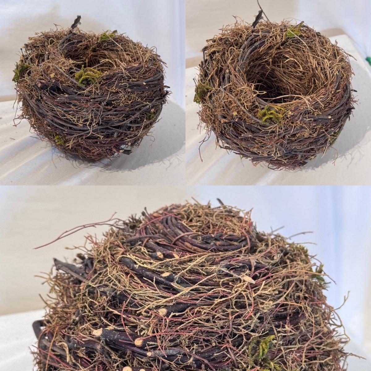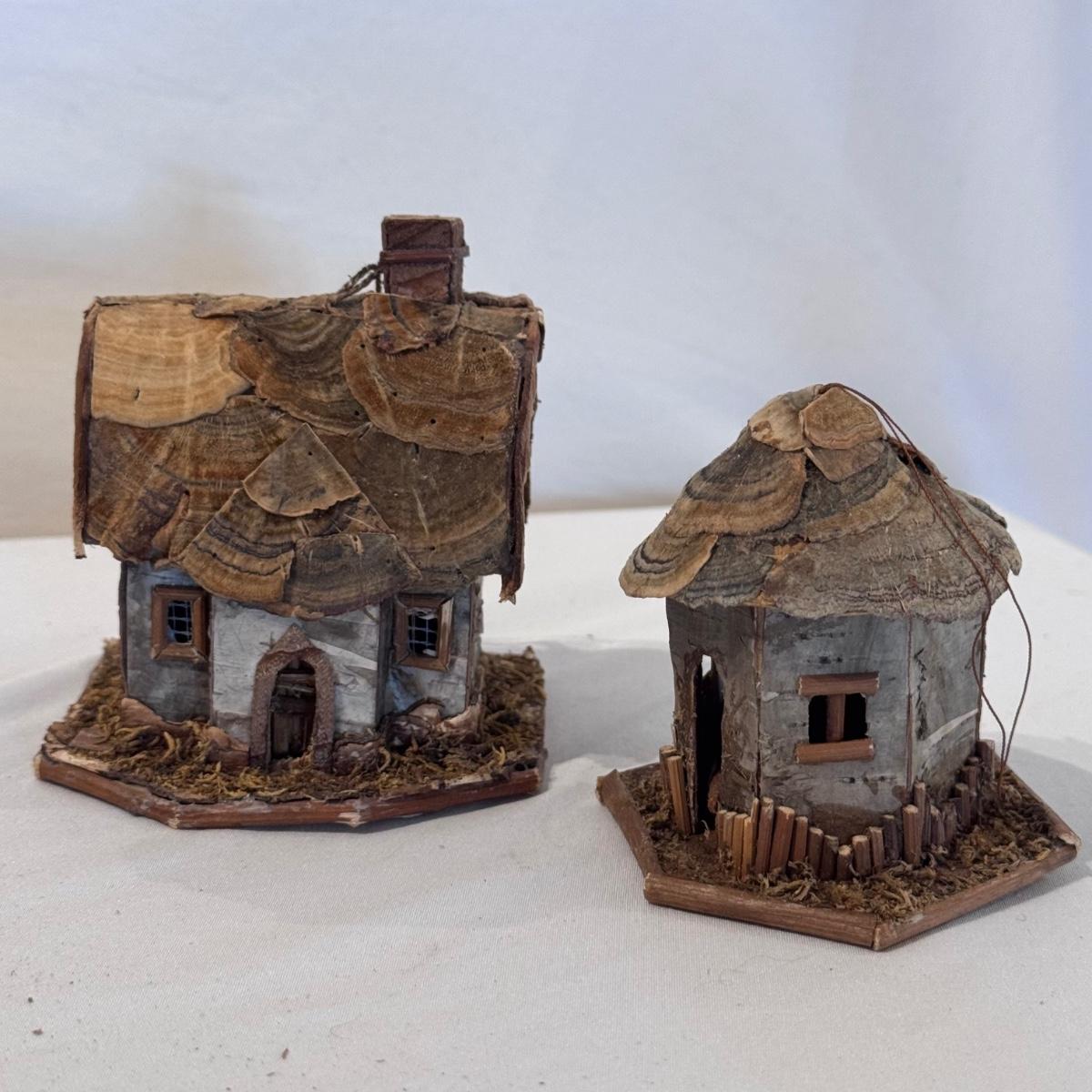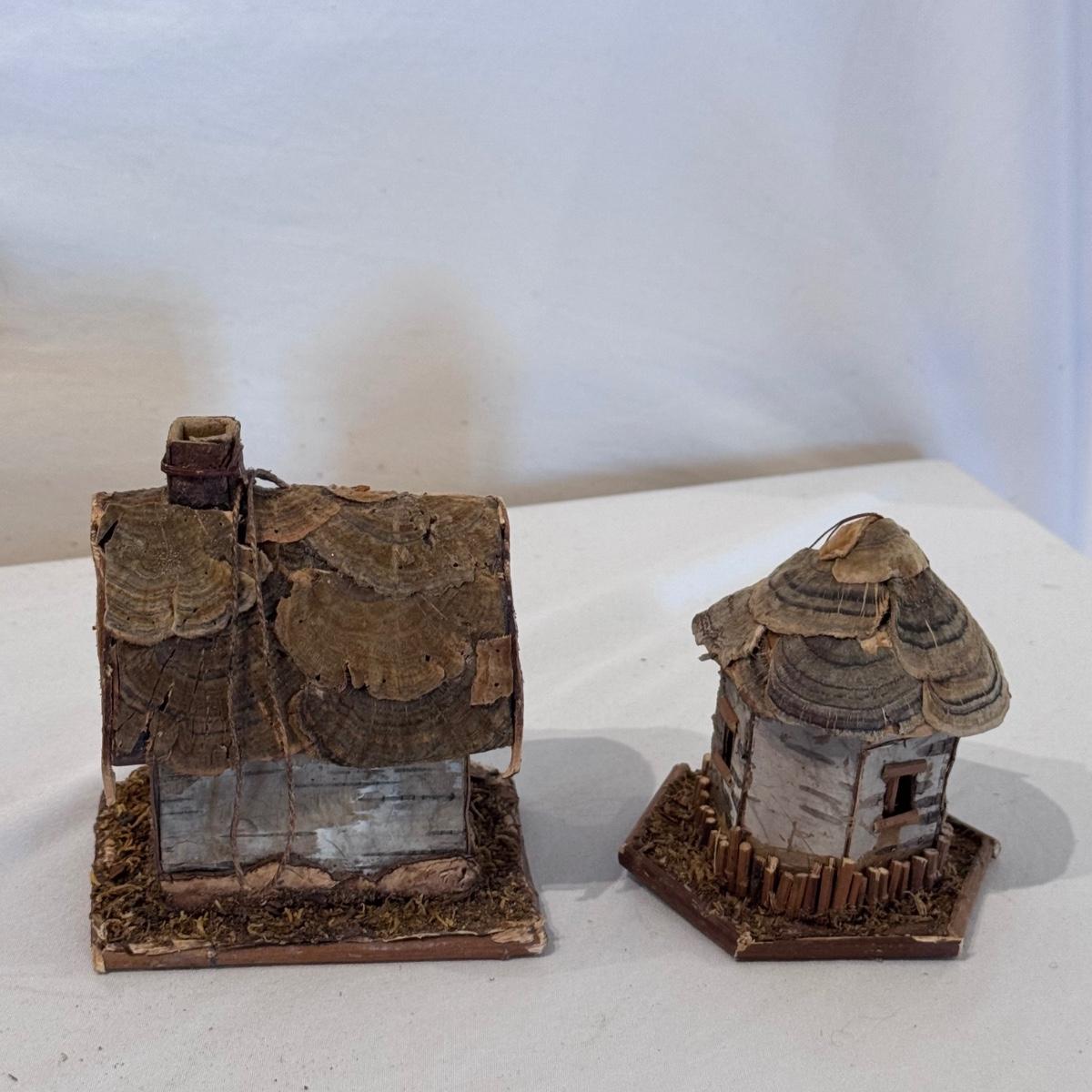 This lot includes one large hornet’s nest hive, a couple Robin nests with eggs, a wood carved fairy, three house ornaments made of wood and mushrooms, three birdhouse ornaments, and more. The birdhouse ornaments are signed with C. Gibson. Also included in this lot are five wooden acorn ornaments, two painted squash, and so much more. See pictures for all items included. The hornet’s hive is the largest item that measures 40” x 11” x 10”H. Local pickup only.
