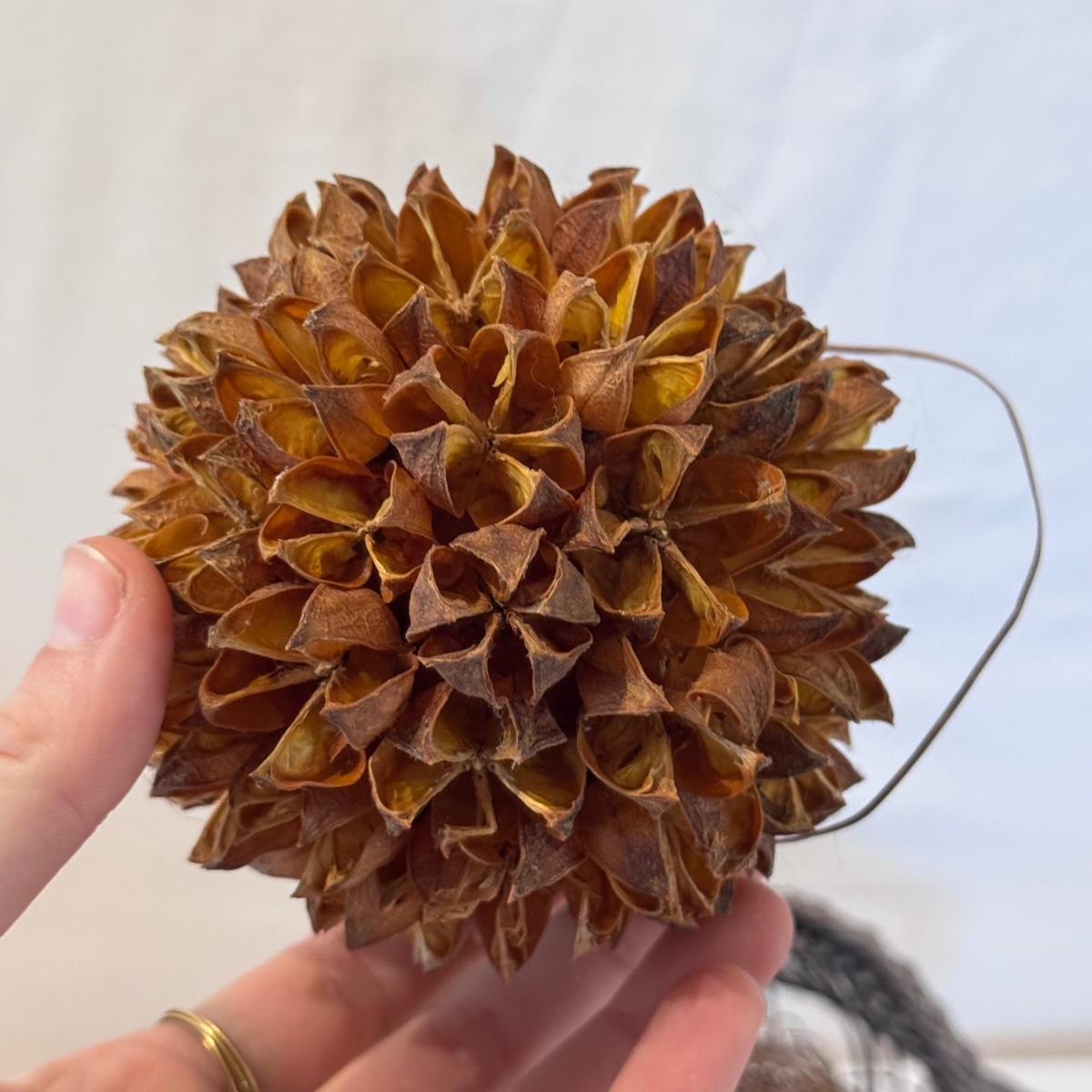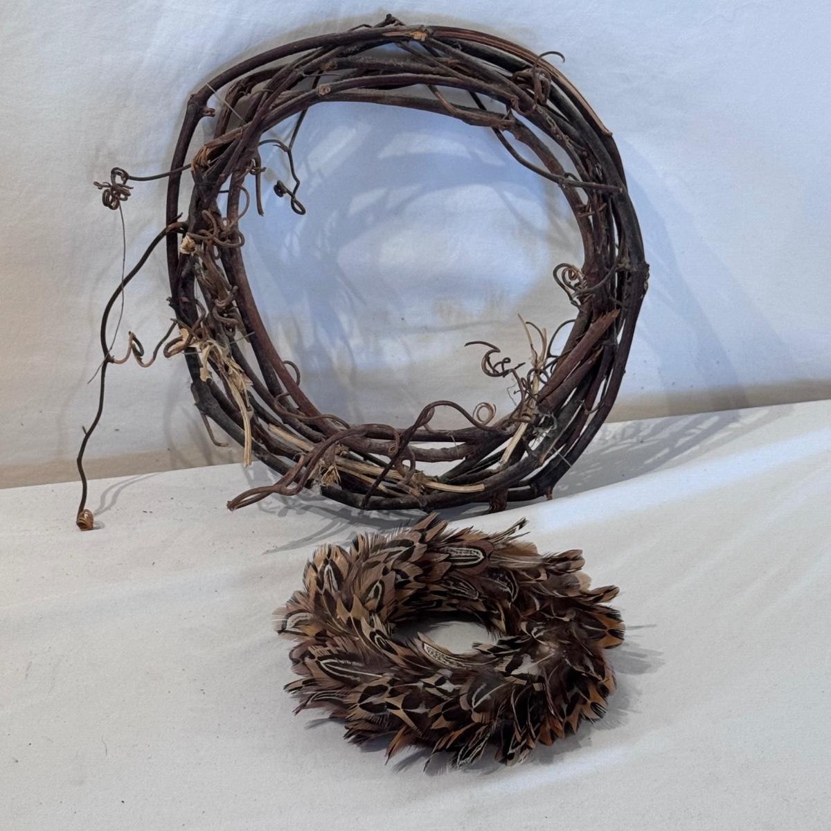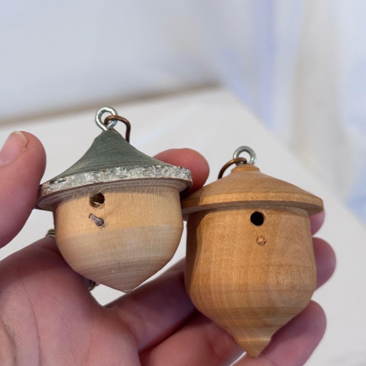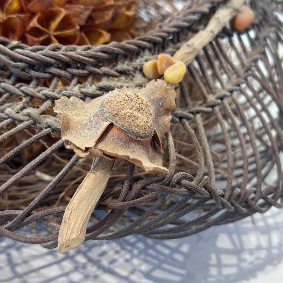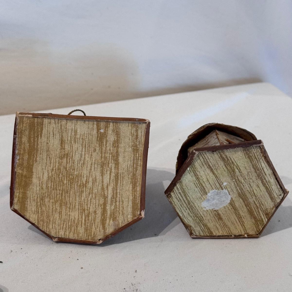 This lot includes one large hornet’s nest hive, a couple Robin nests with eggs, a wood carved fairy, three house ornaments made of wood and mushrooms, three birdhouse ornaments, and more. The birdhouse ornaments are signed with C. Gibson. Also included in this lot are five wooden acorn ornaments, two painted squash, and so much more. See pictures for all items included. The hornet’s hive is the largest item that measures 40” x 11” x 10”H. Local pickup only.