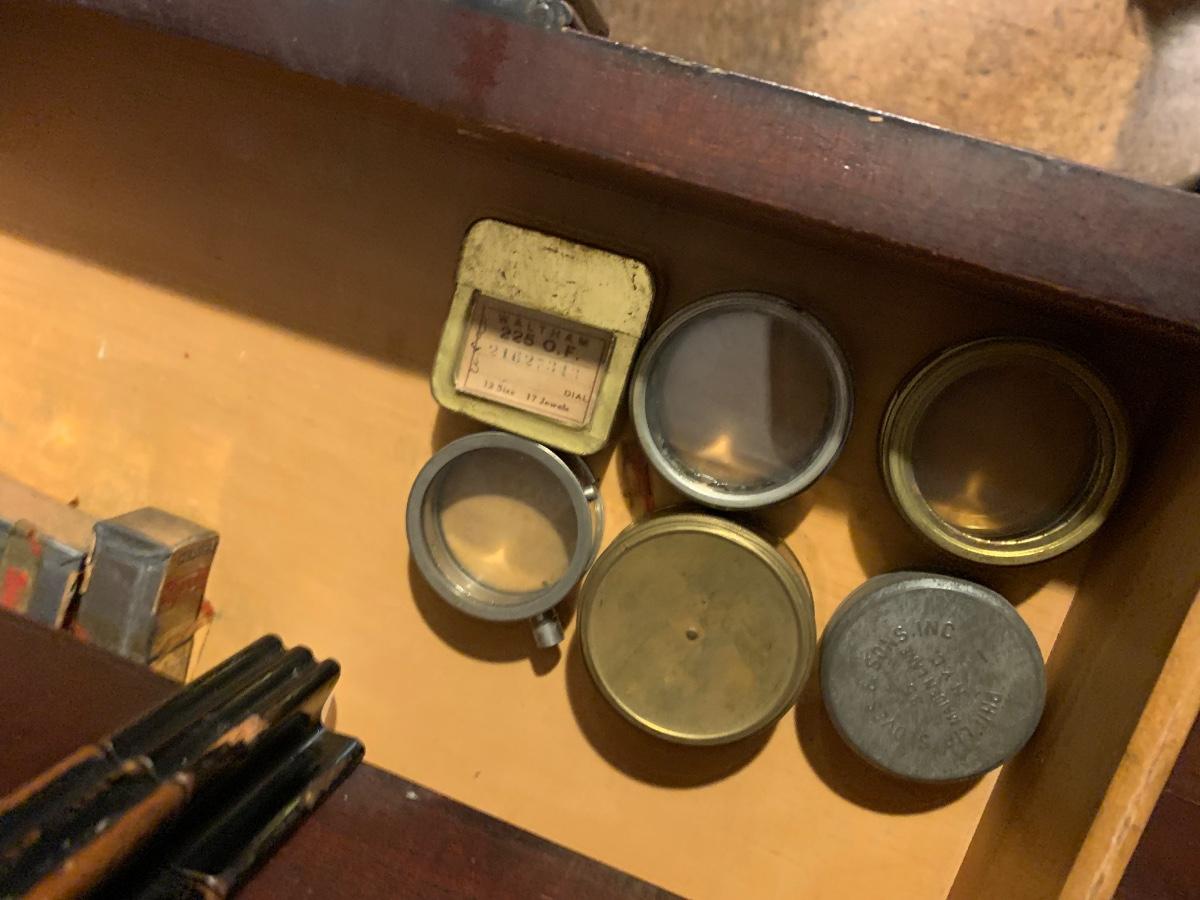 Large selection of Pocket Watches: (both complete & parts watches) – Horologists Cabinets, Tools, & Repair Equipment. Makers to include but not limited to: