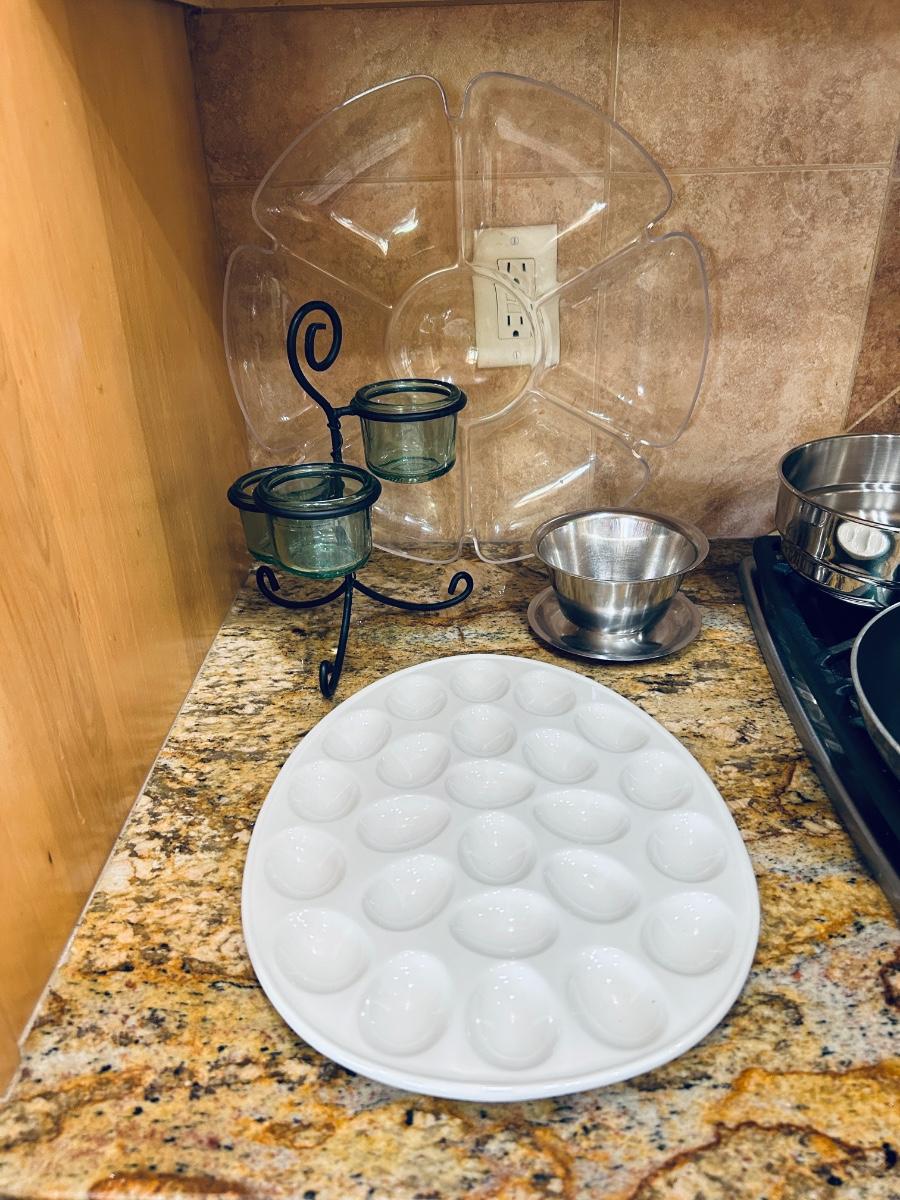 HORS D’OEUVRES, DEVILED EGGS AND CONDIMENT SERVERS