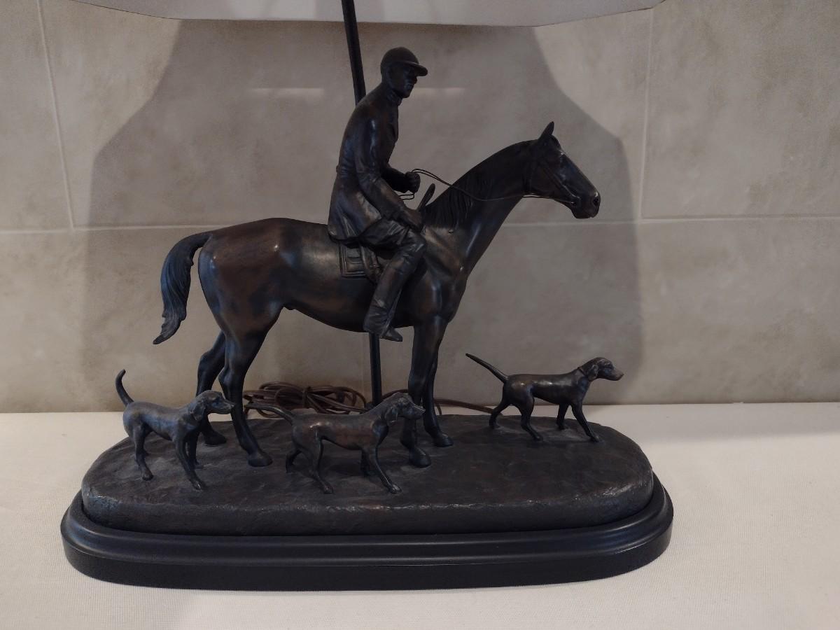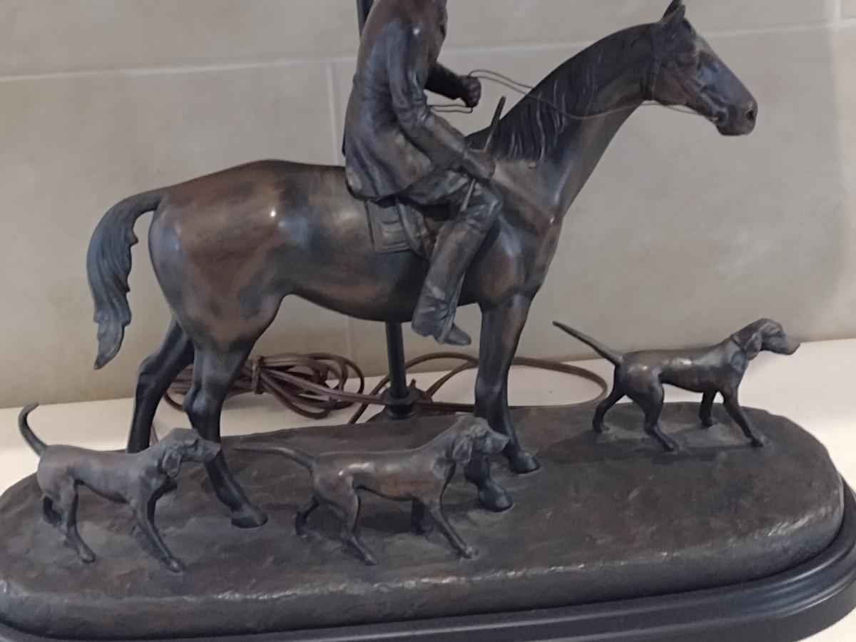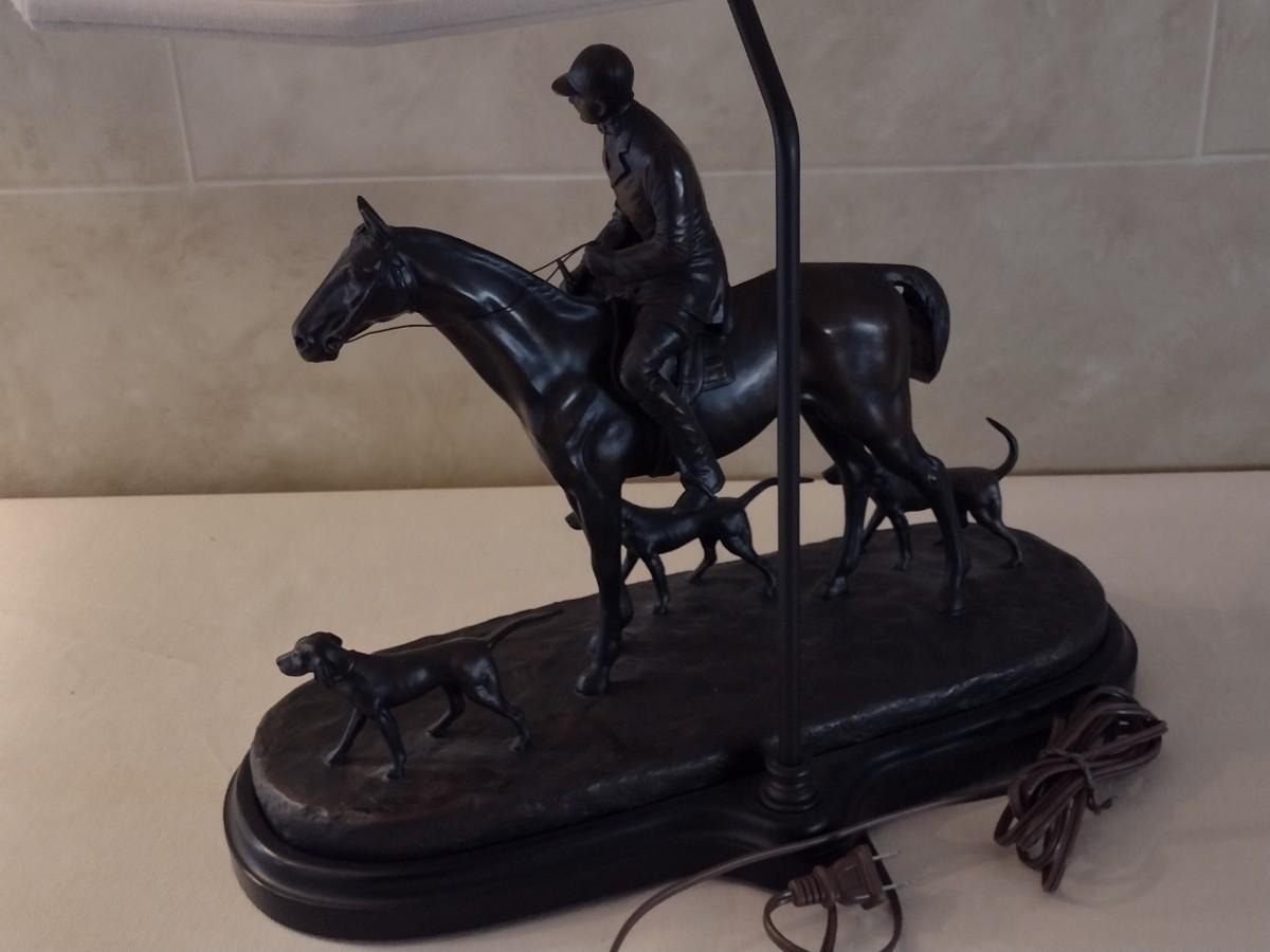 Bronze Hunter on Horseback with Hounds Large Table Lamp