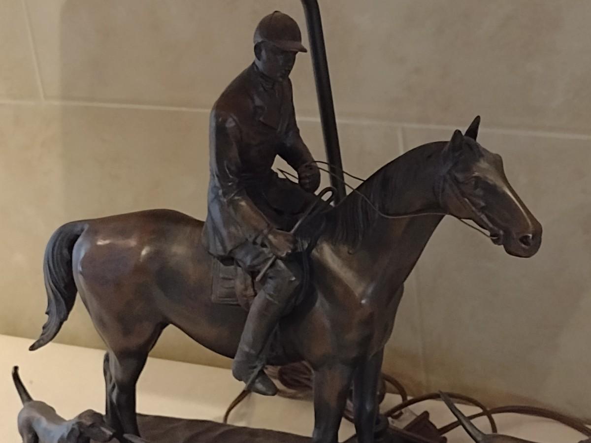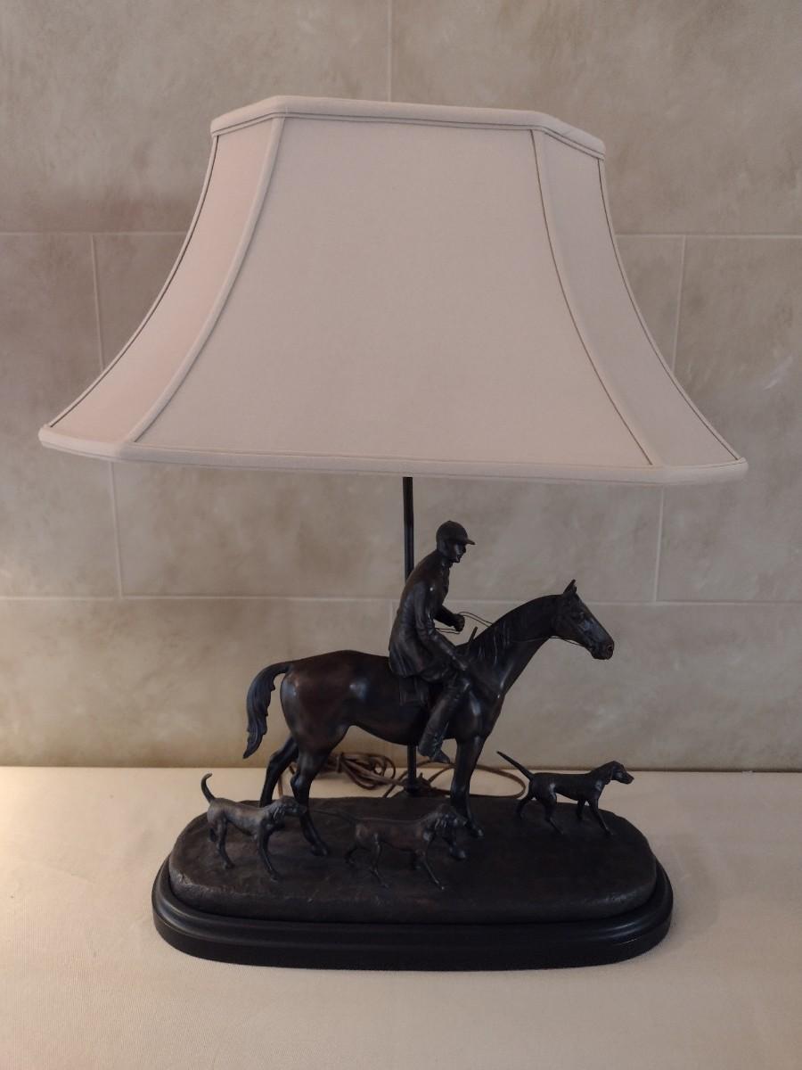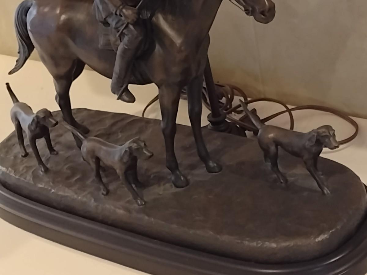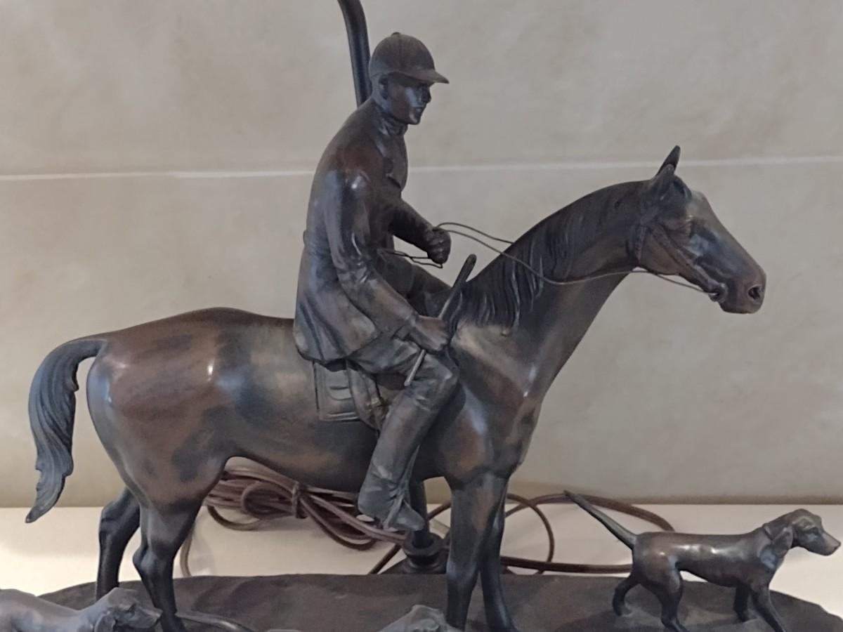 Bronze Hunter on Horseback with Hounds Large Table Lamp