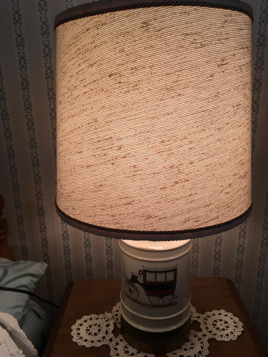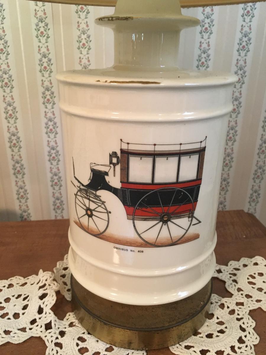 Vintage ceramic horse buggy lamp and shade. No chips or cracks thouuth gold paint on trim is worn.