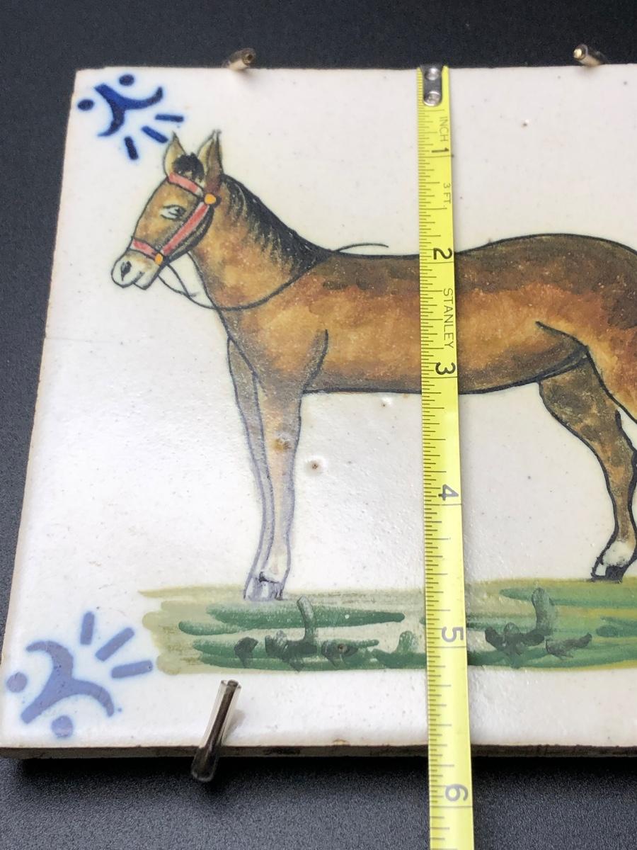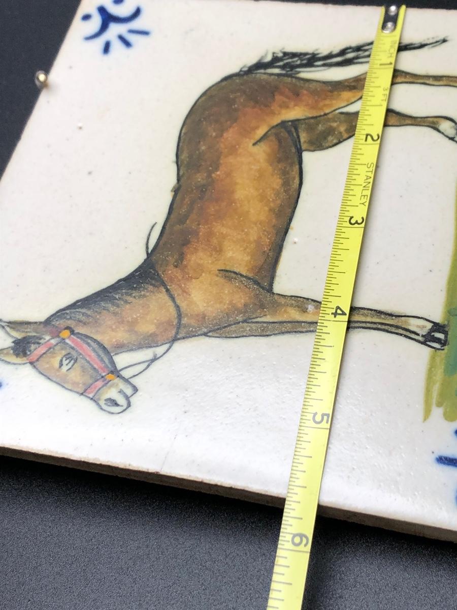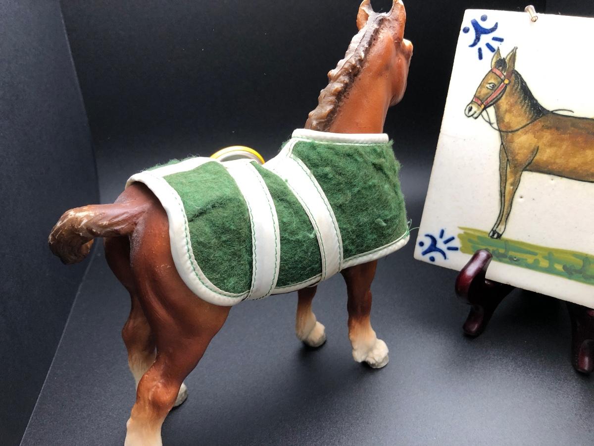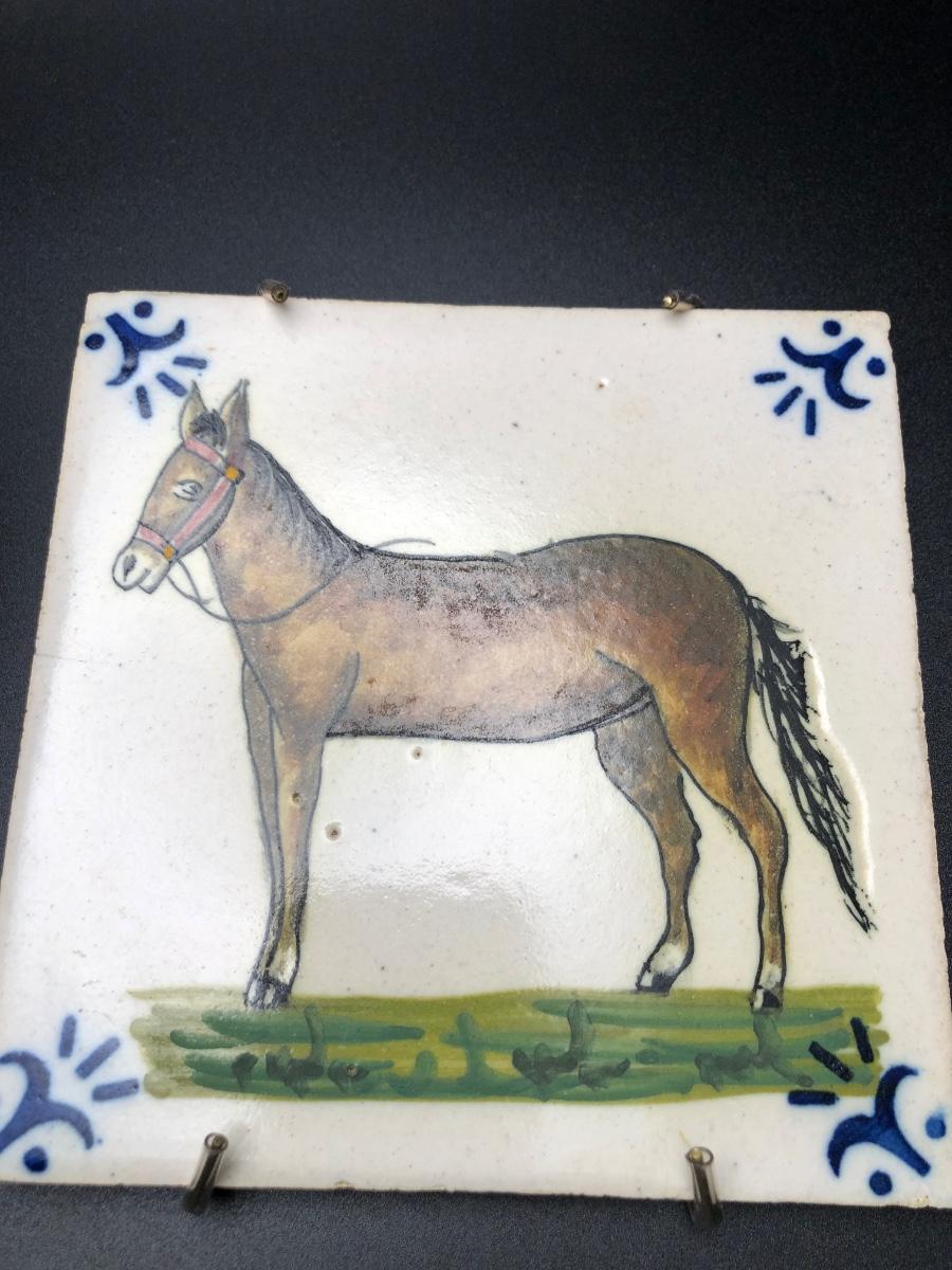 Horse Collectors Lot; Ceramic Tile, Horse Figurine & Pin