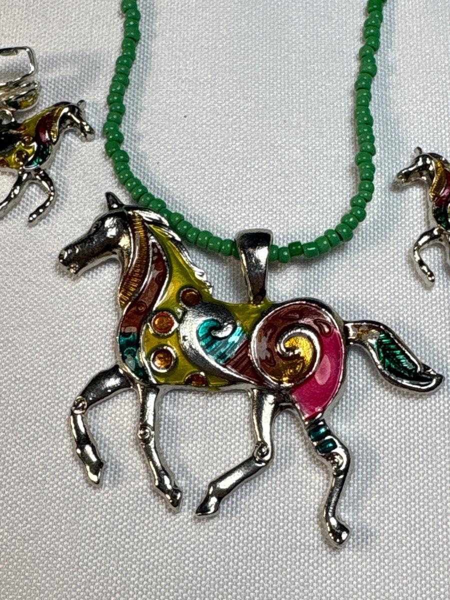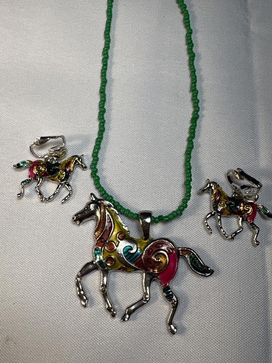 Horse necklace & clip-ons