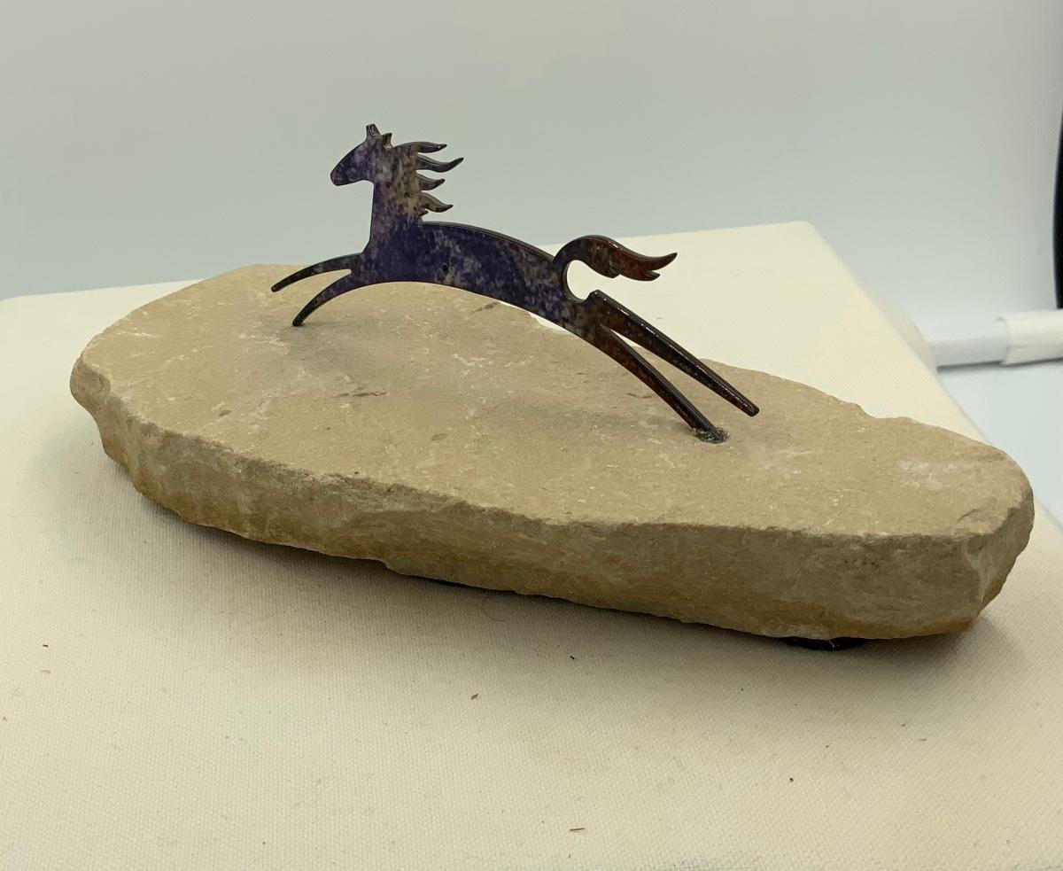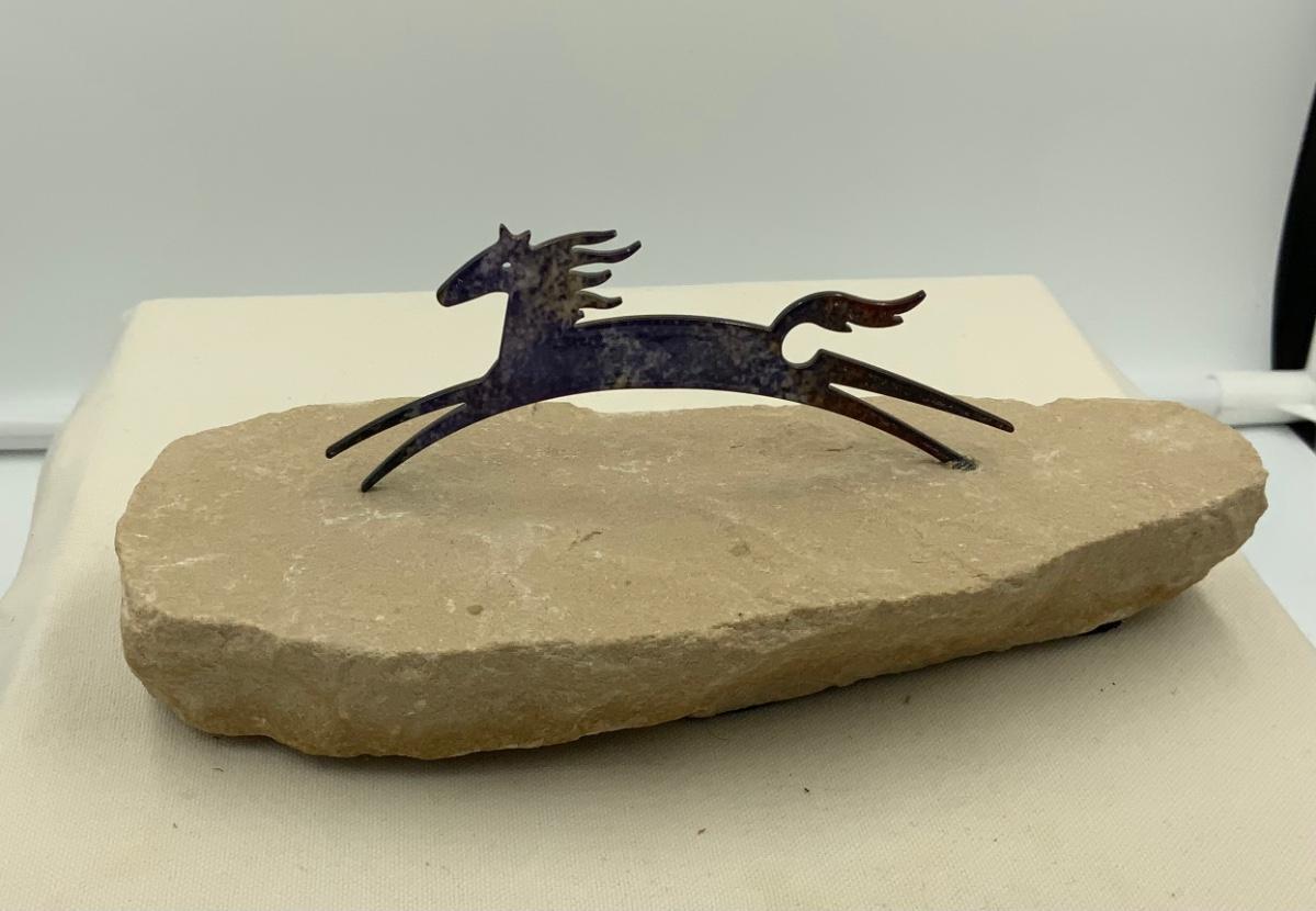 This 2.5”H x 7”W metal horse on natural stone is a perfect piece to add to your collection. Great for home or office, this sculpture just makes you smile!