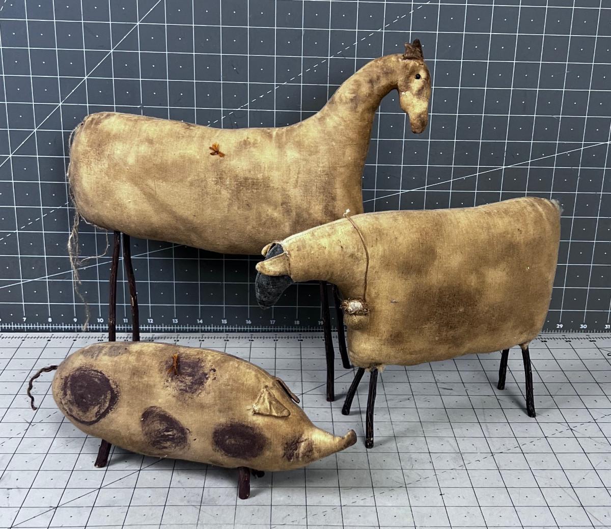Horse, Sheep, Pig, Hand Crafted Rustic Farm Animals