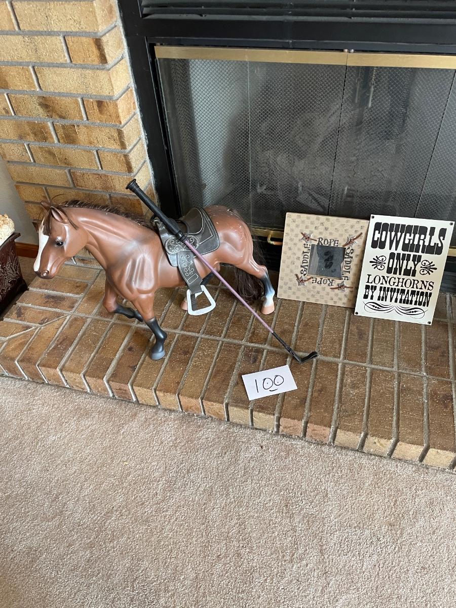 HORSE WITH SADDLE AND SIGNS
