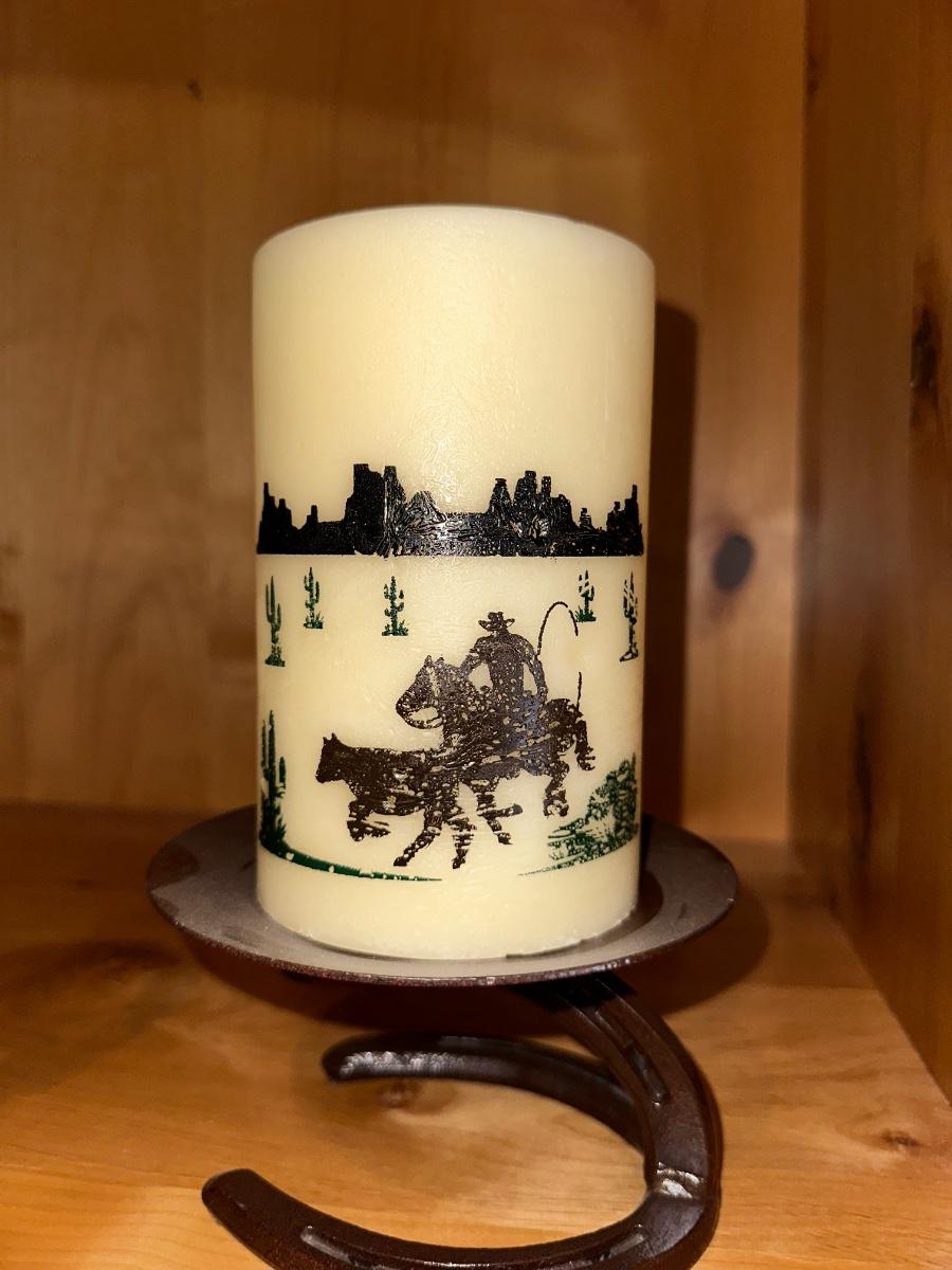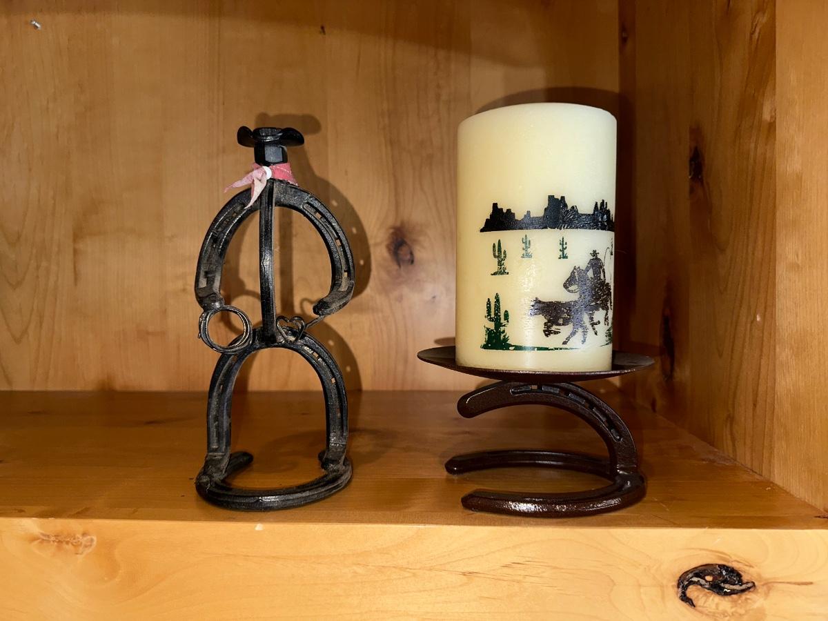 HORSESHOE COWBOY AND CANDLE HOLDER
