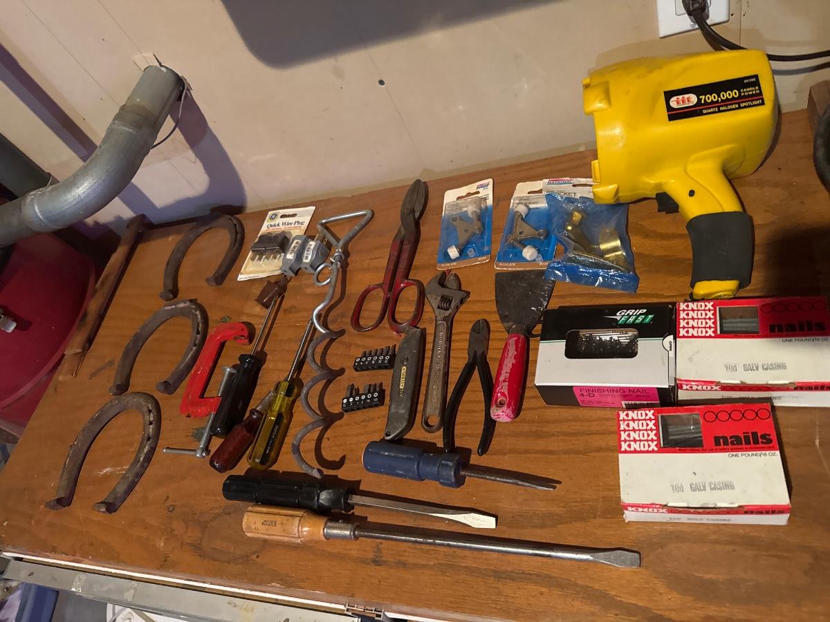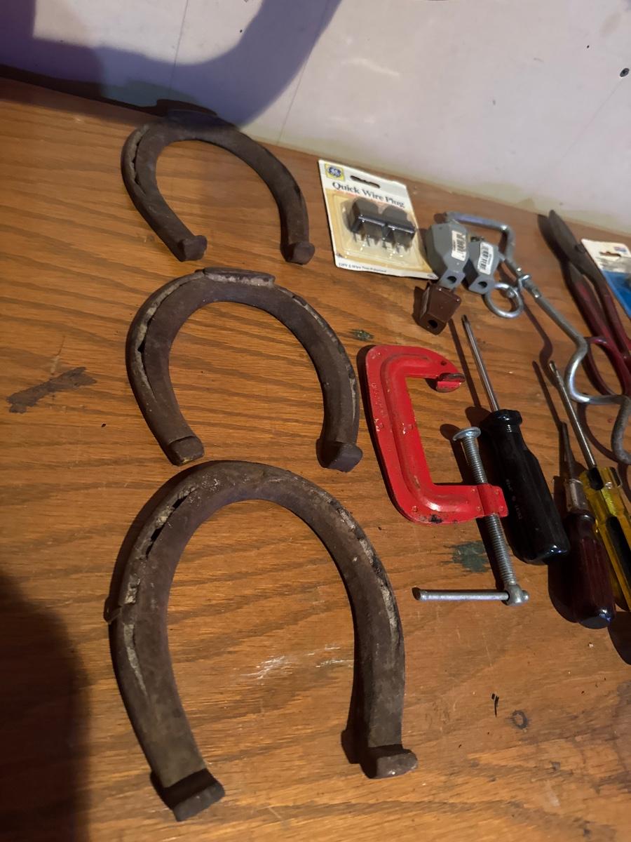 Horseshoes, screwdrivers, clamps, and hardware