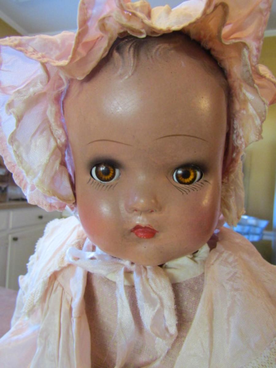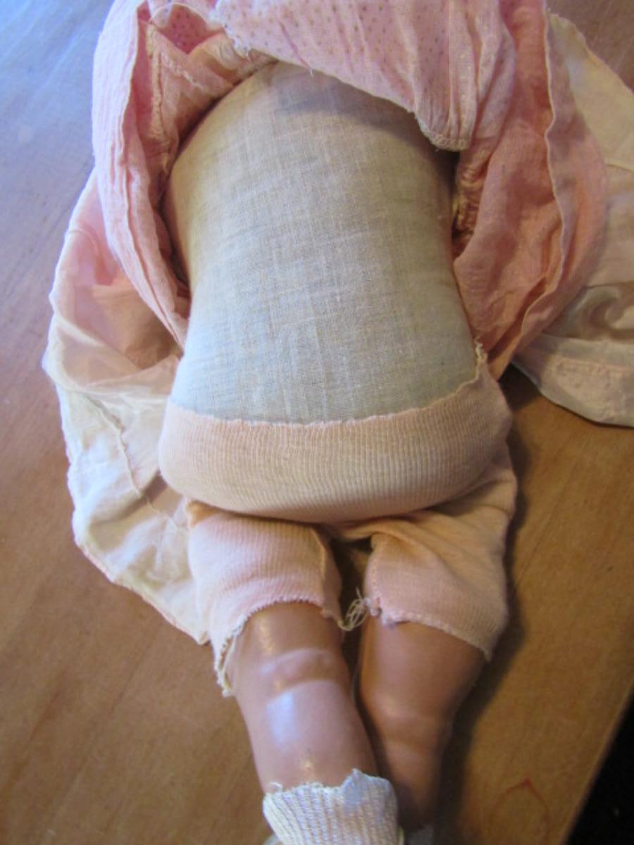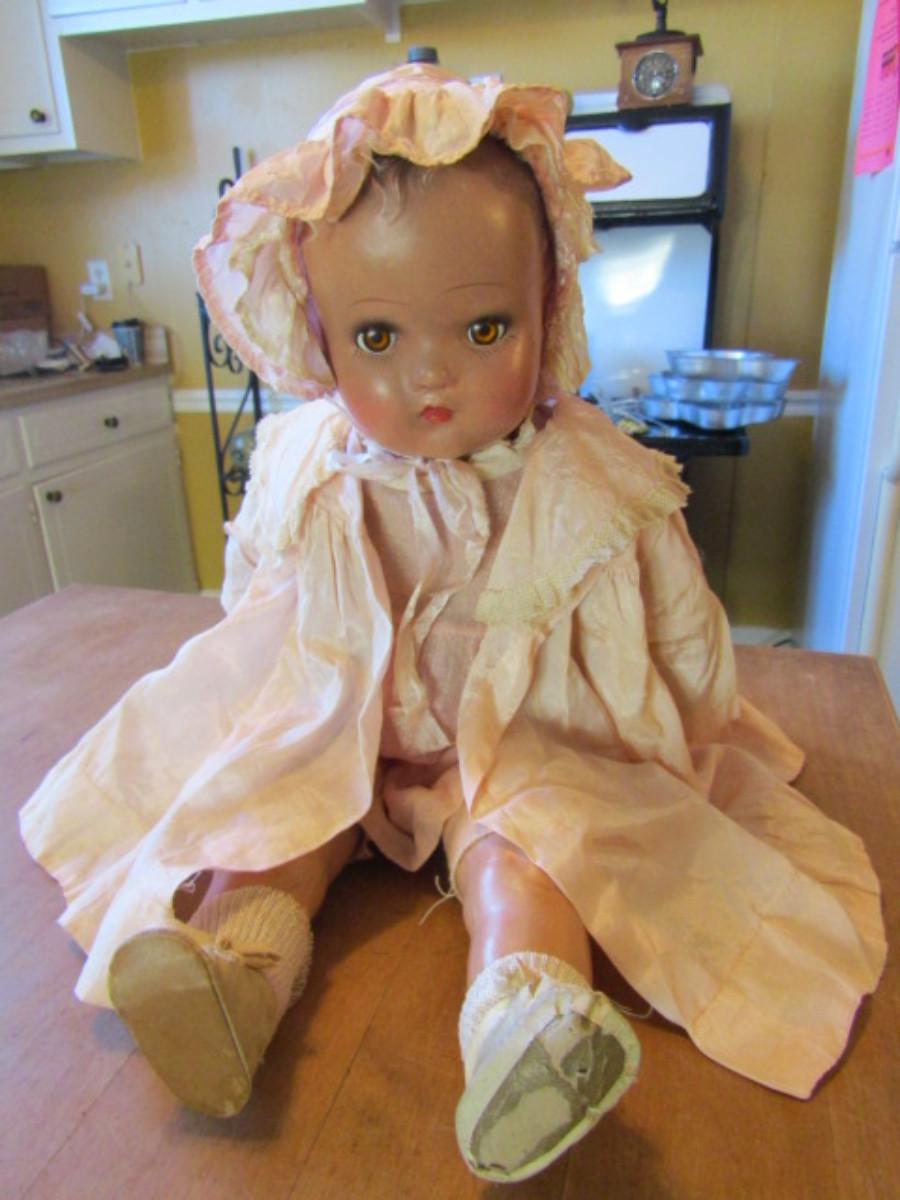 Horsman Doll- 18 Inch. Combination fabric and plastic body. Eyes open and close.