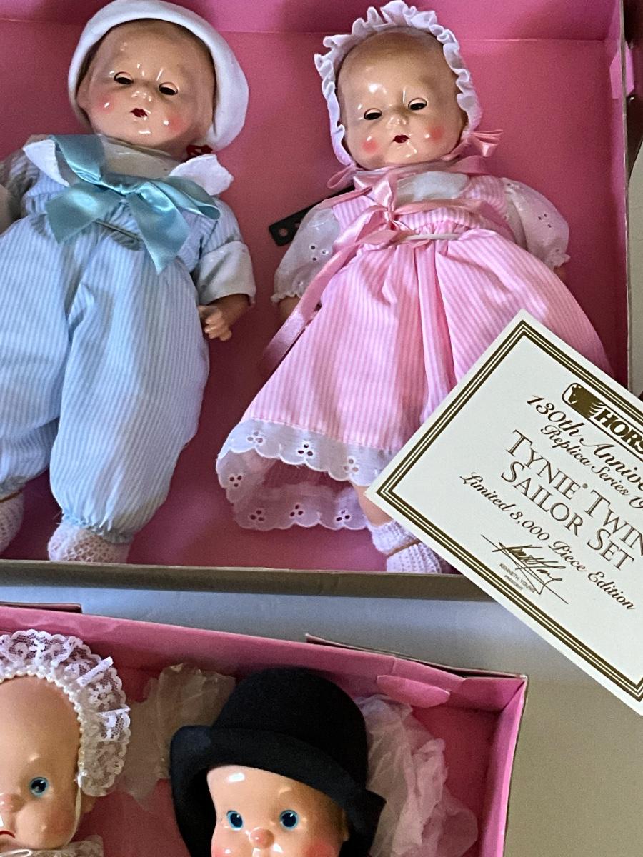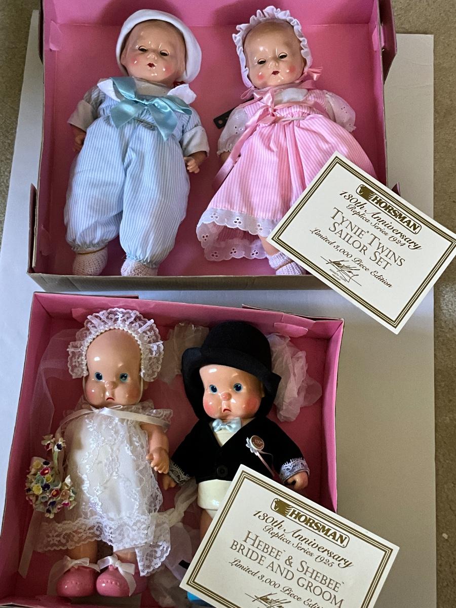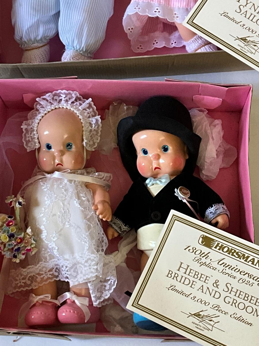 Hebee & Shebee Doll Lot Bride and Groom, Tynie Twins by Horsman