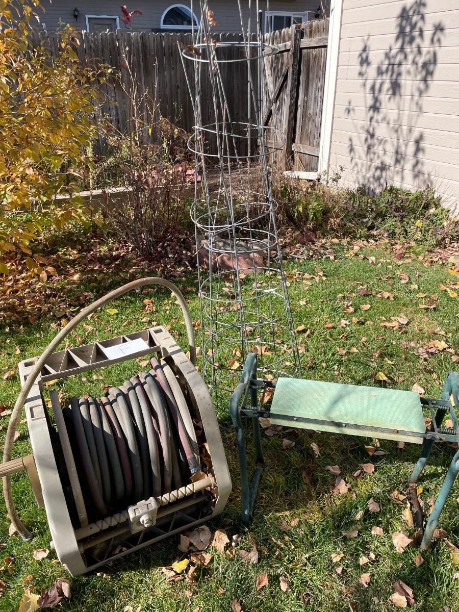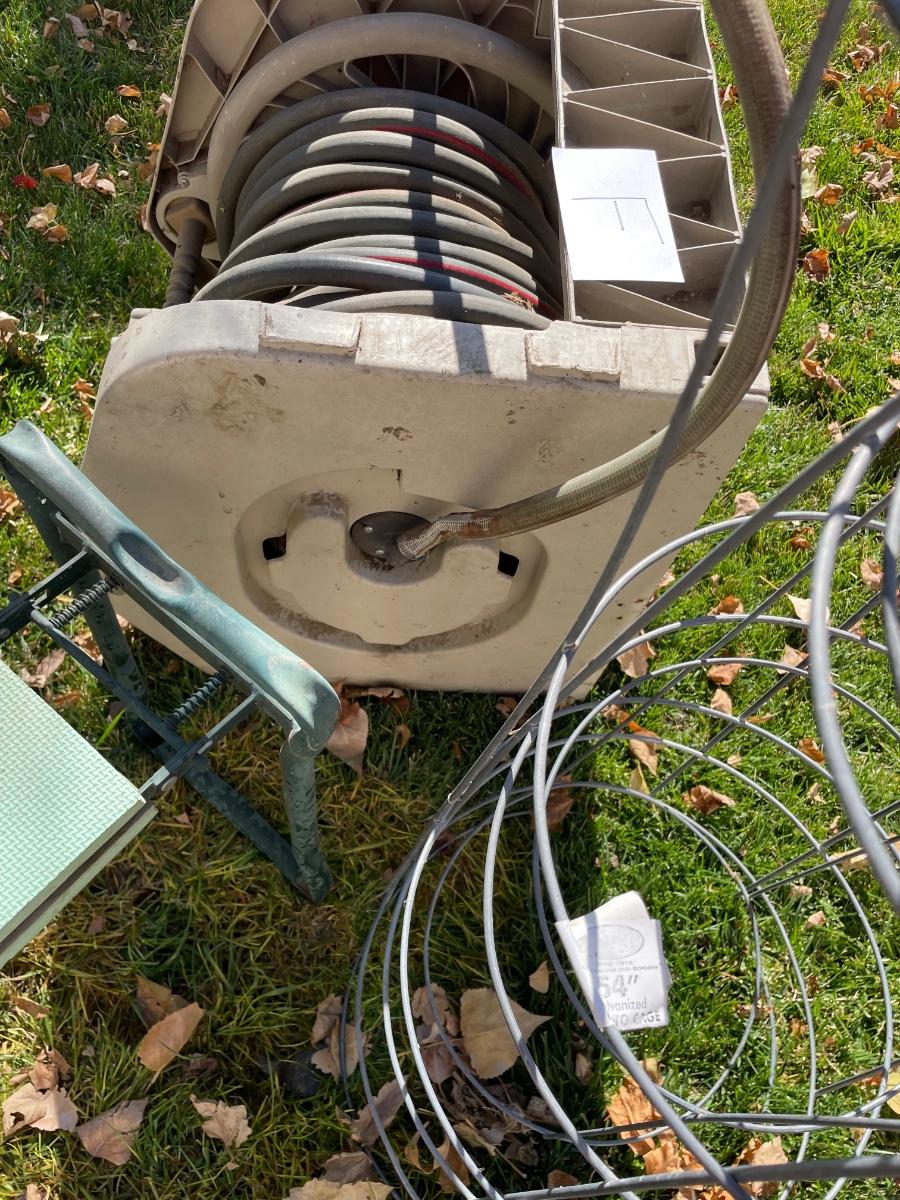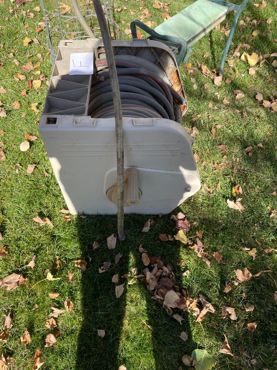 HOSE ON REEL PLUS GARDEN STOOL AND KNEELER