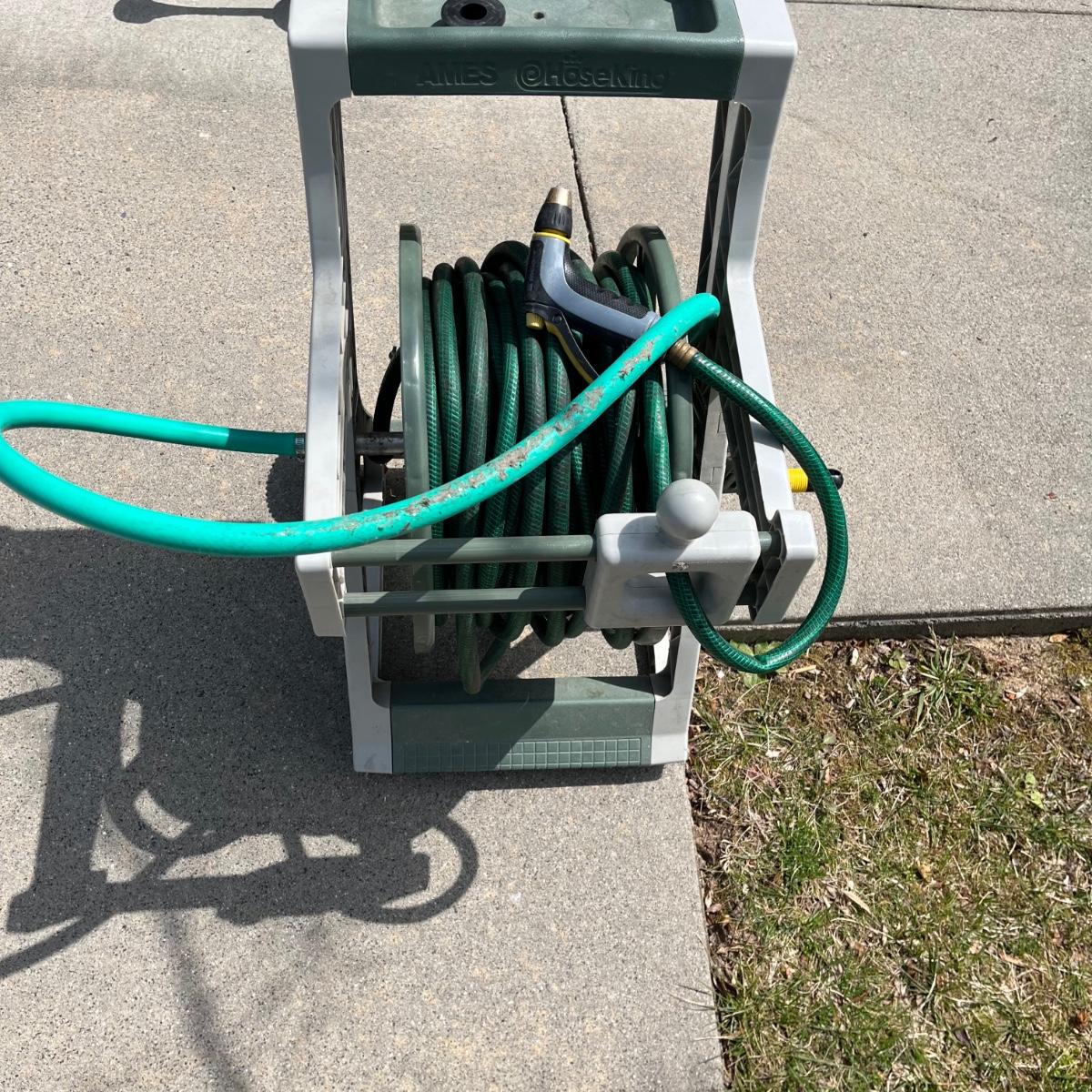 Lot includes a Ames Hoseking plastic hose reel with hose. Also includes a plastic watering can.