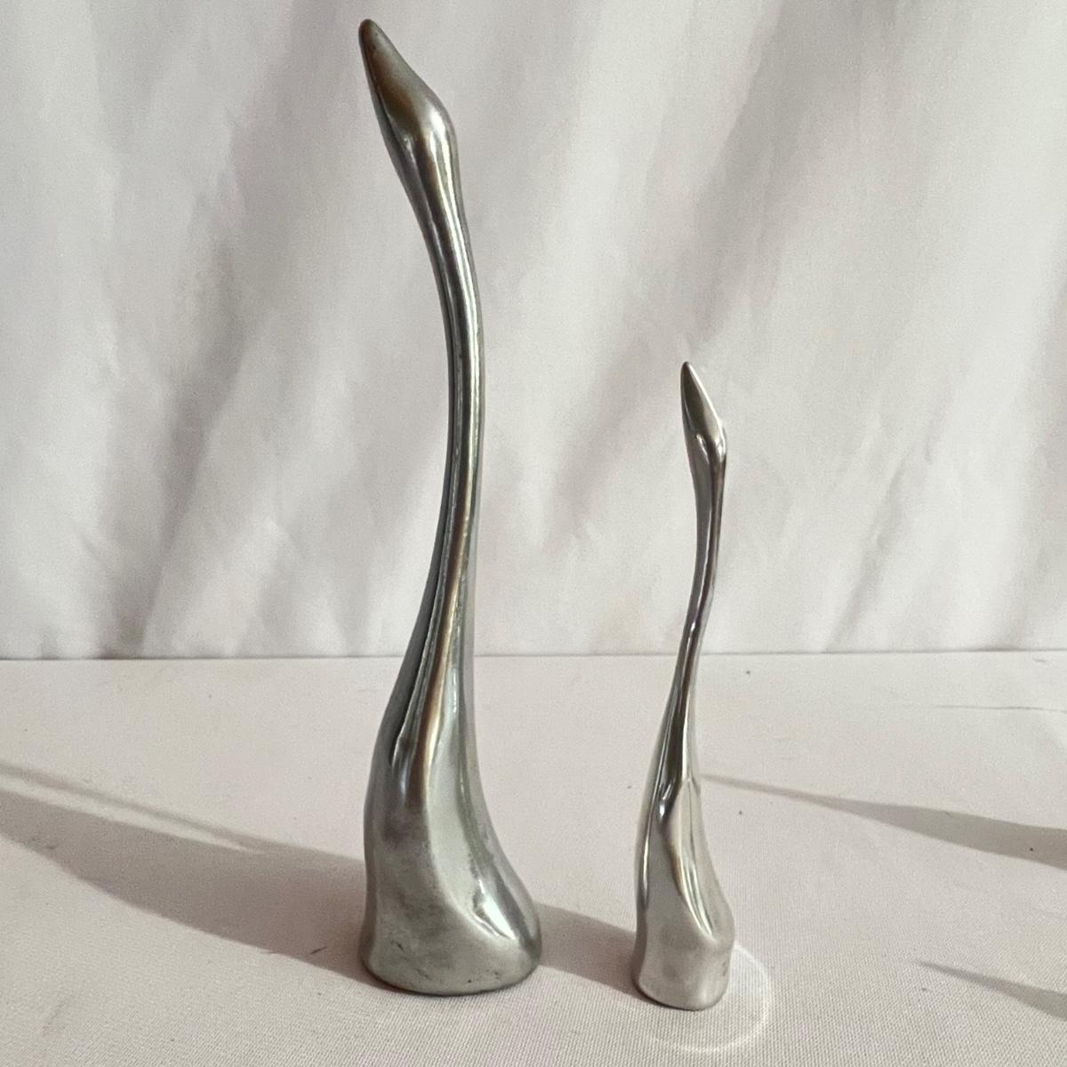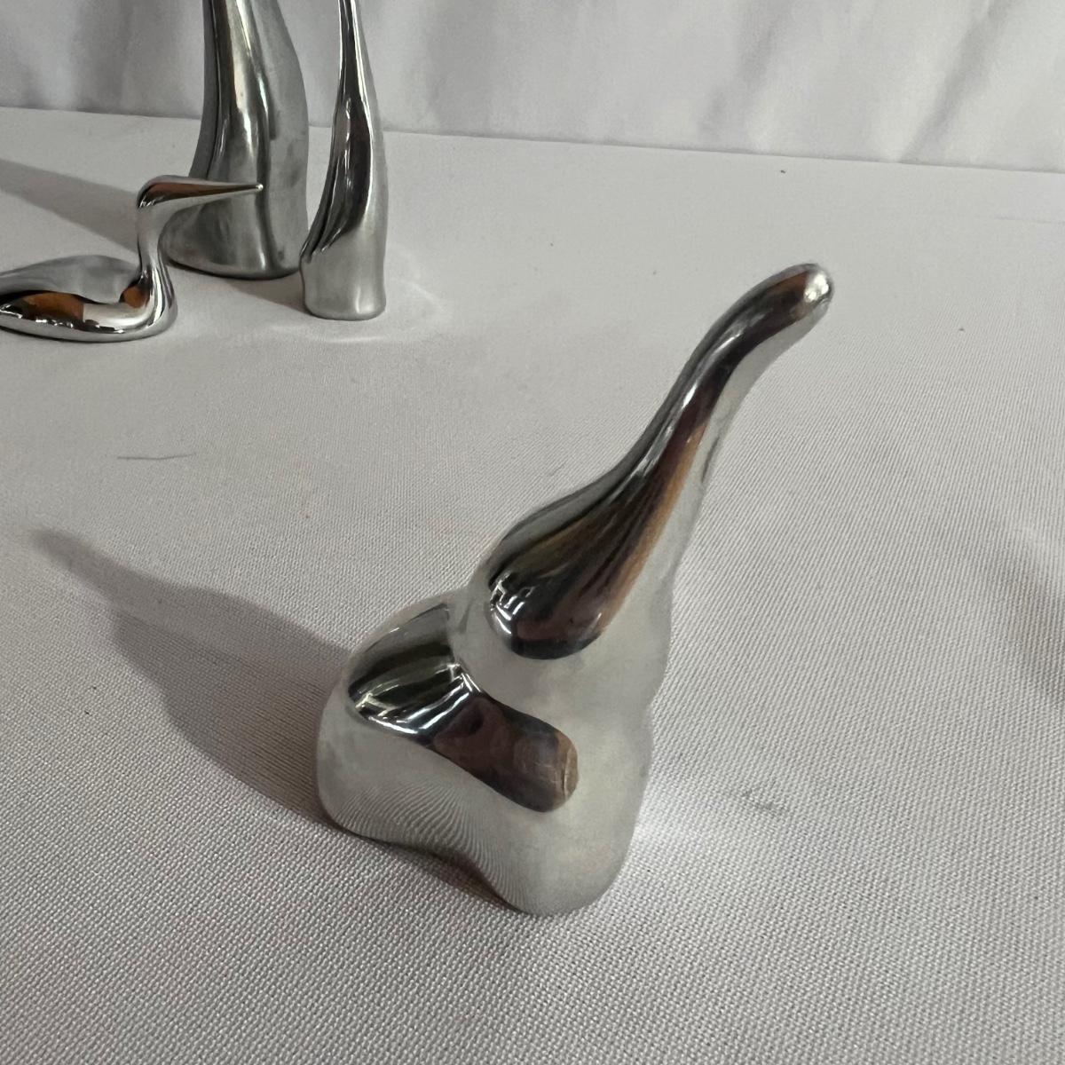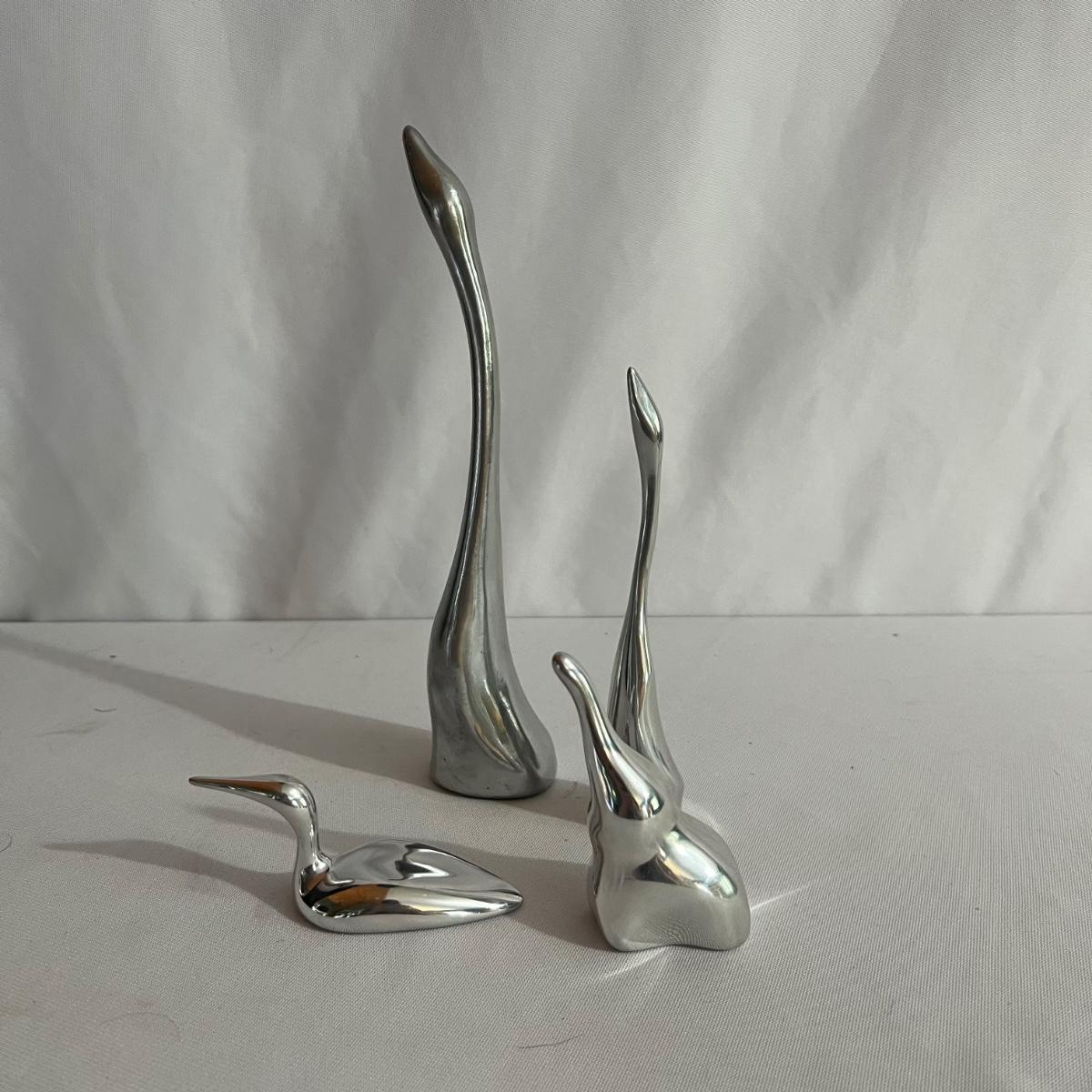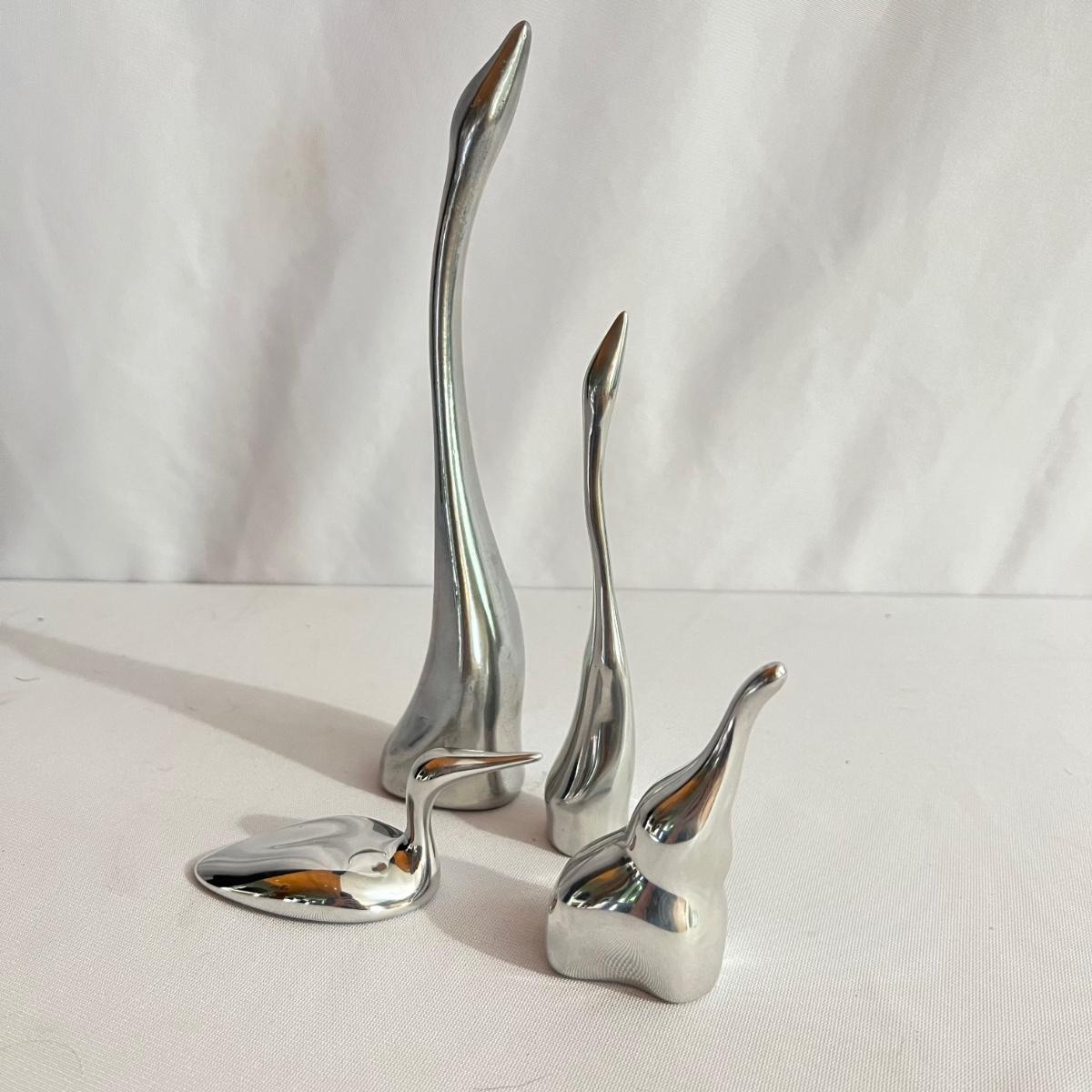 Four metal animal sculptures from Hoselton of Canada in this lot. Two cranes, an elephant and a duck. They all appear to be cast aluminum.