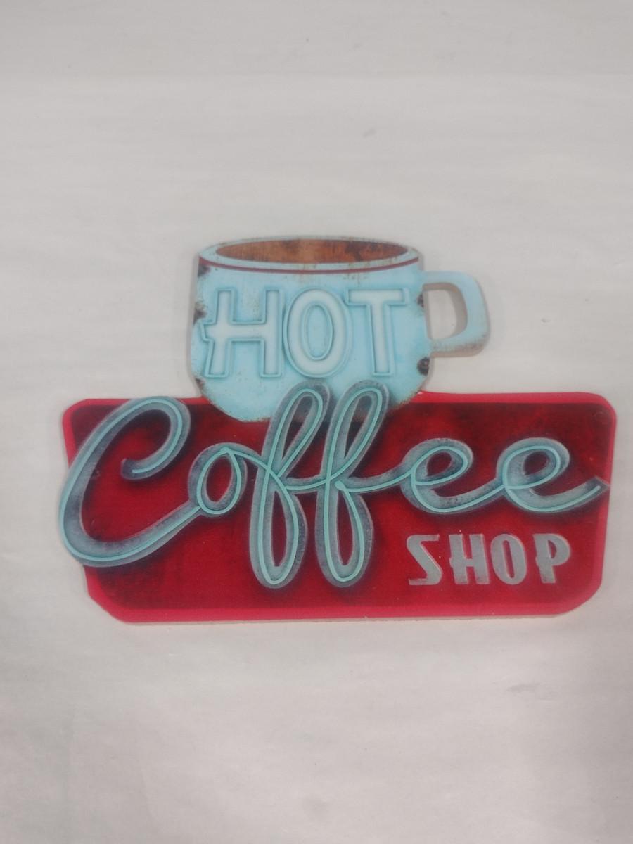 'Hot Coffee' Wood Sign- Approx 8" x 10"