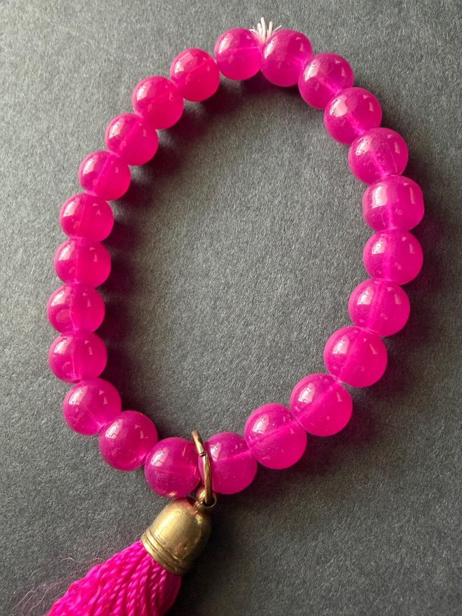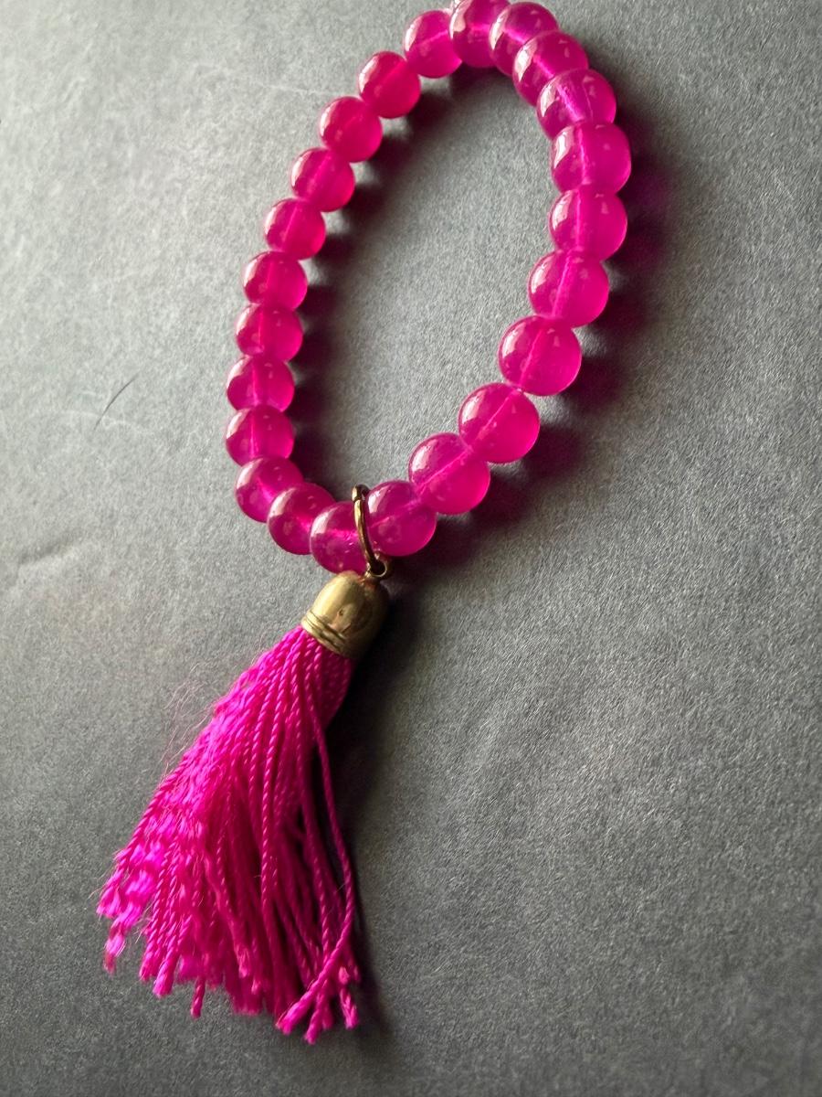 Hot pink beaded tassel stretchy fashion bracelet