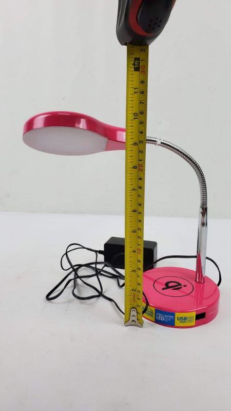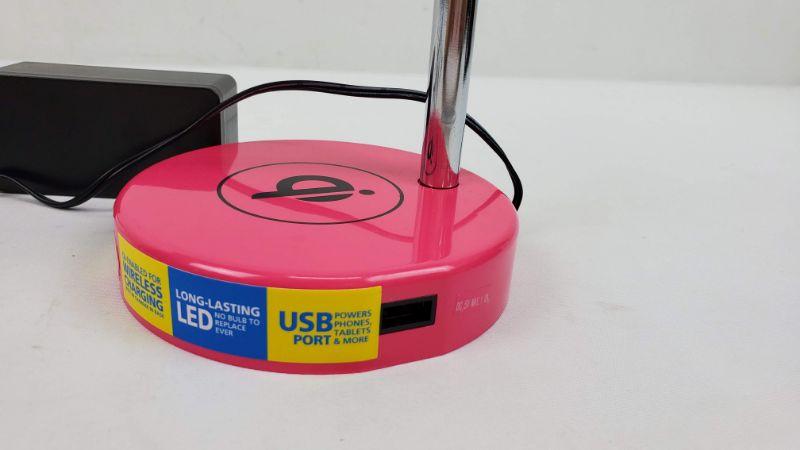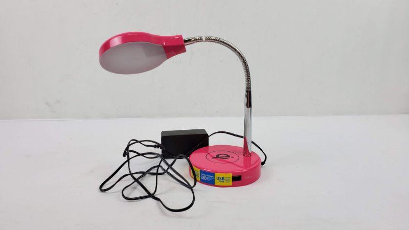 Hot Pink Desk/Nightstand Lamp, USB Port, LED Light - New