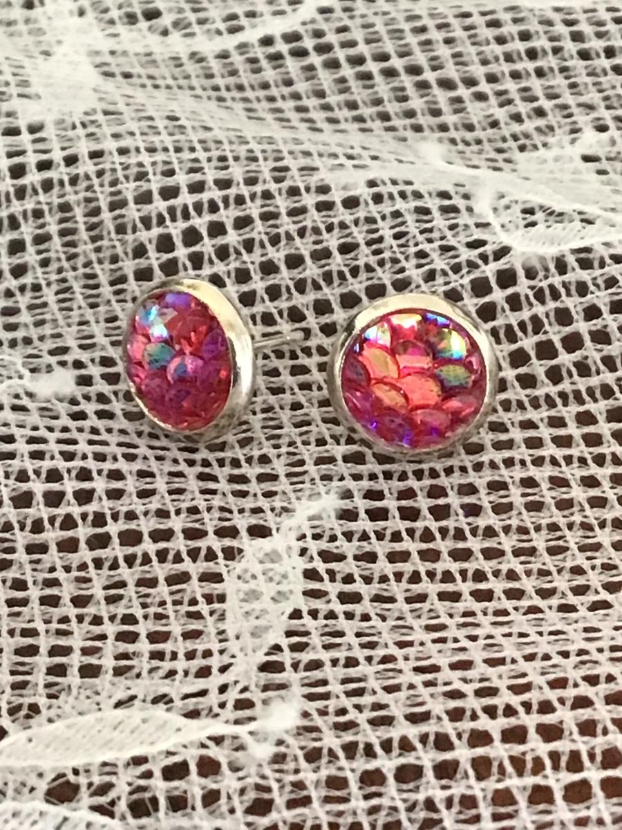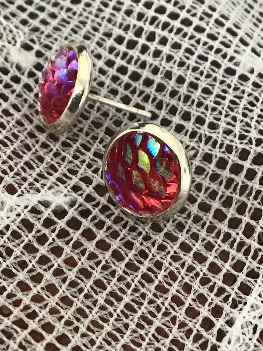 Hot Pink Iridescent Scale Stainless Steel Earring Set, Earrings for Women, Earrings for Girls, Stud Earrings