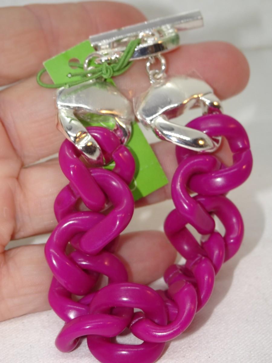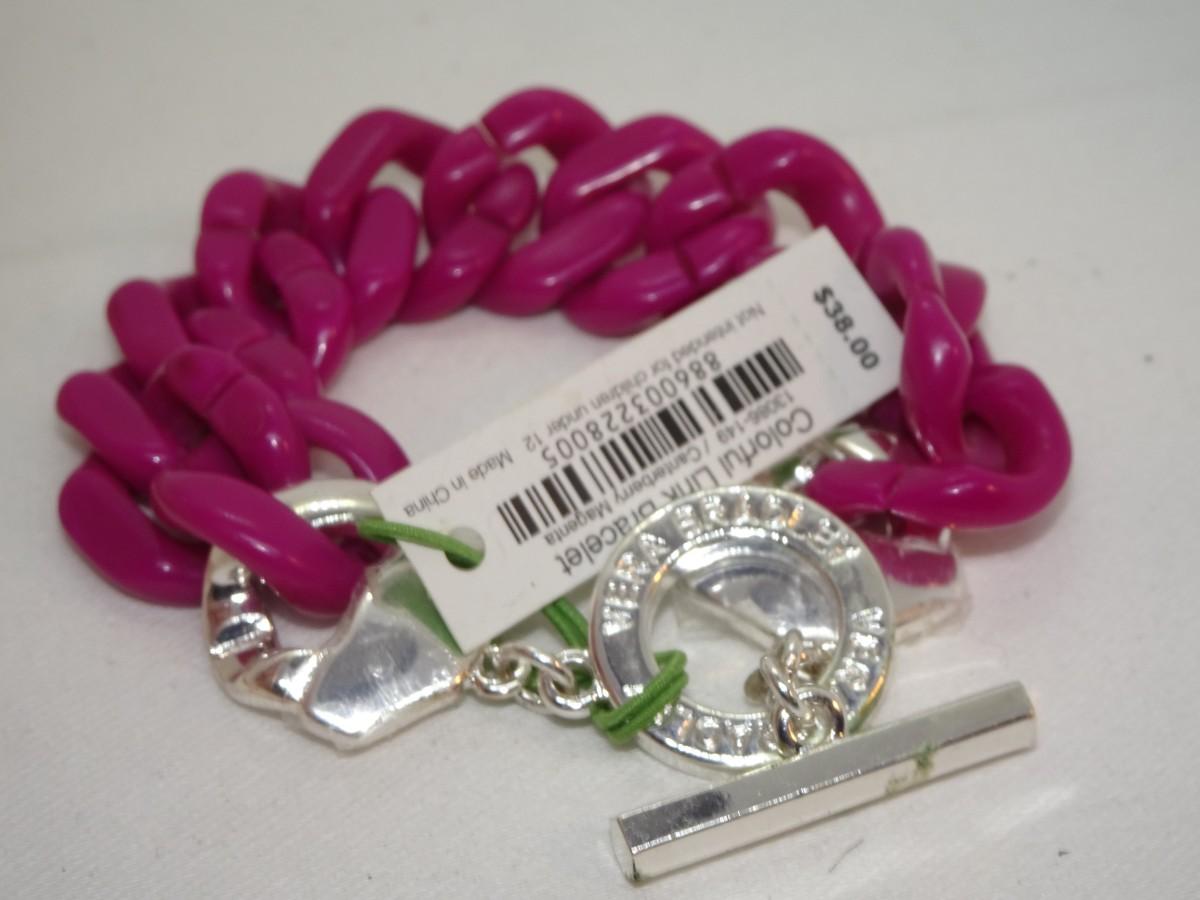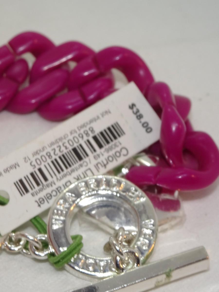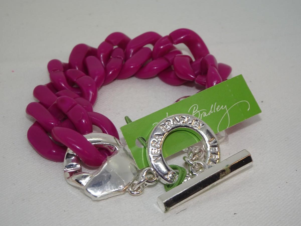 Hot Pink Never Worn Vera Bradley Chain Bracelet, Silver tone NWT