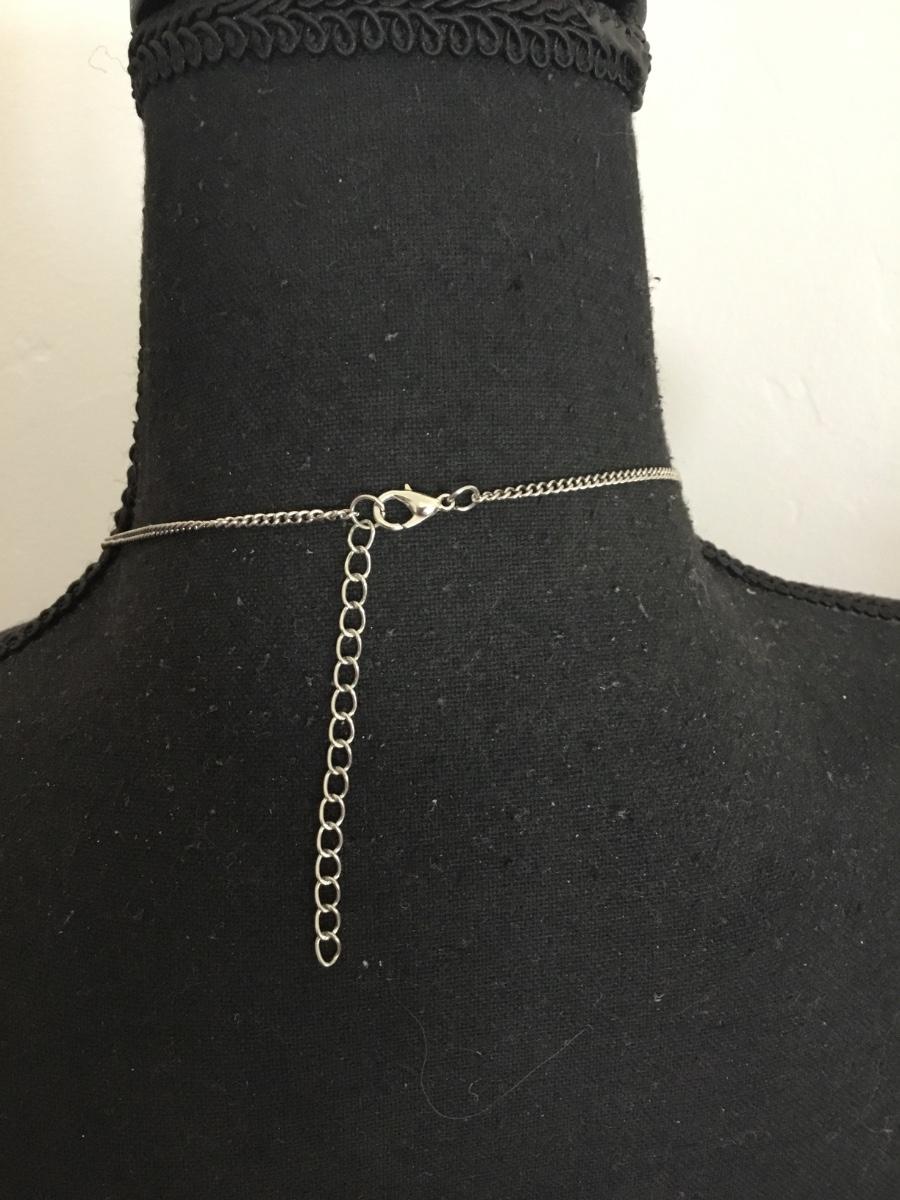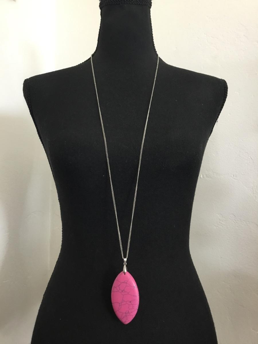 Hot pink stone pendant, silver tone, chain necklace long