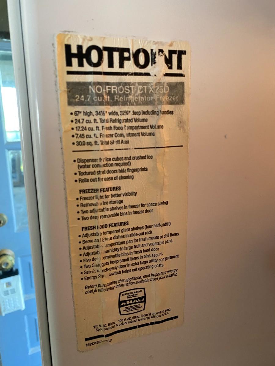 Frost Free Hot Point 24.7 cu. Ft. with ice maker, working