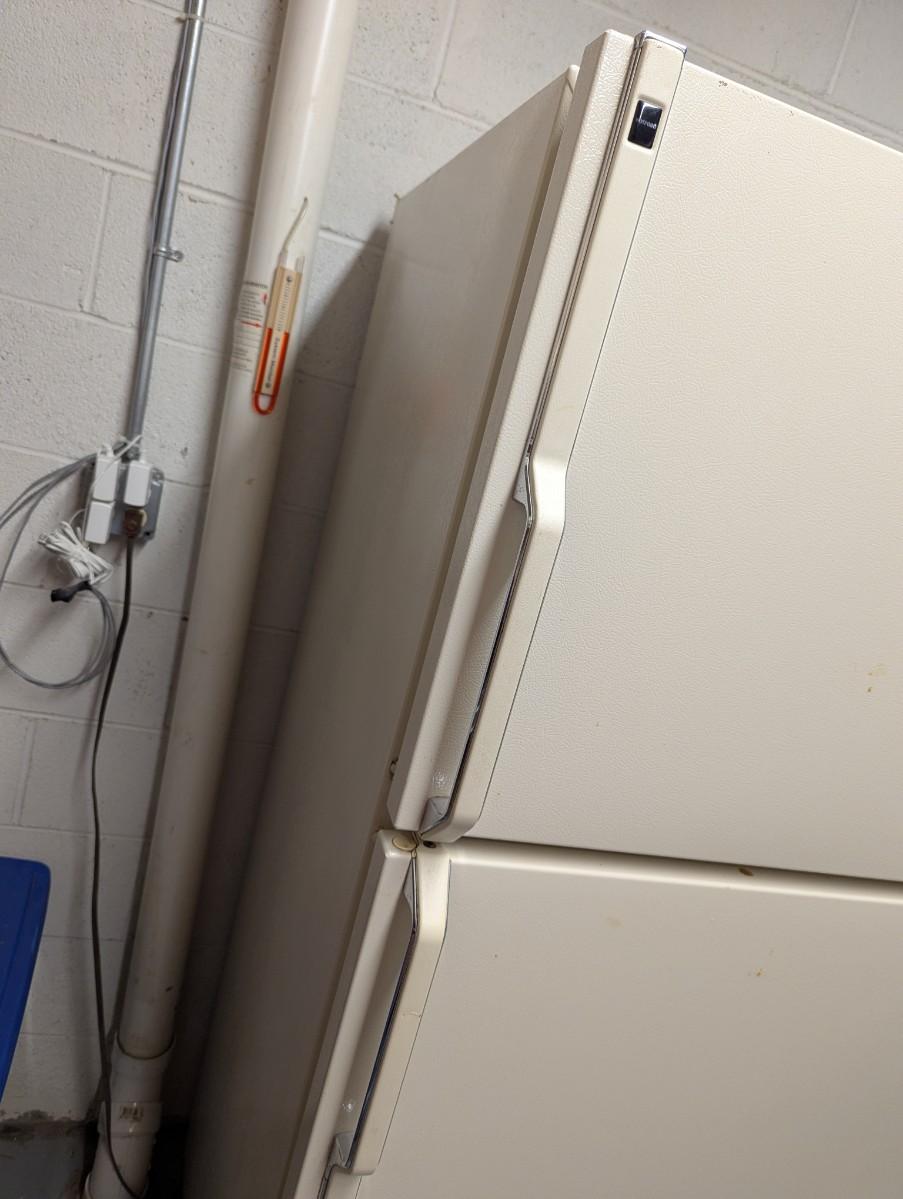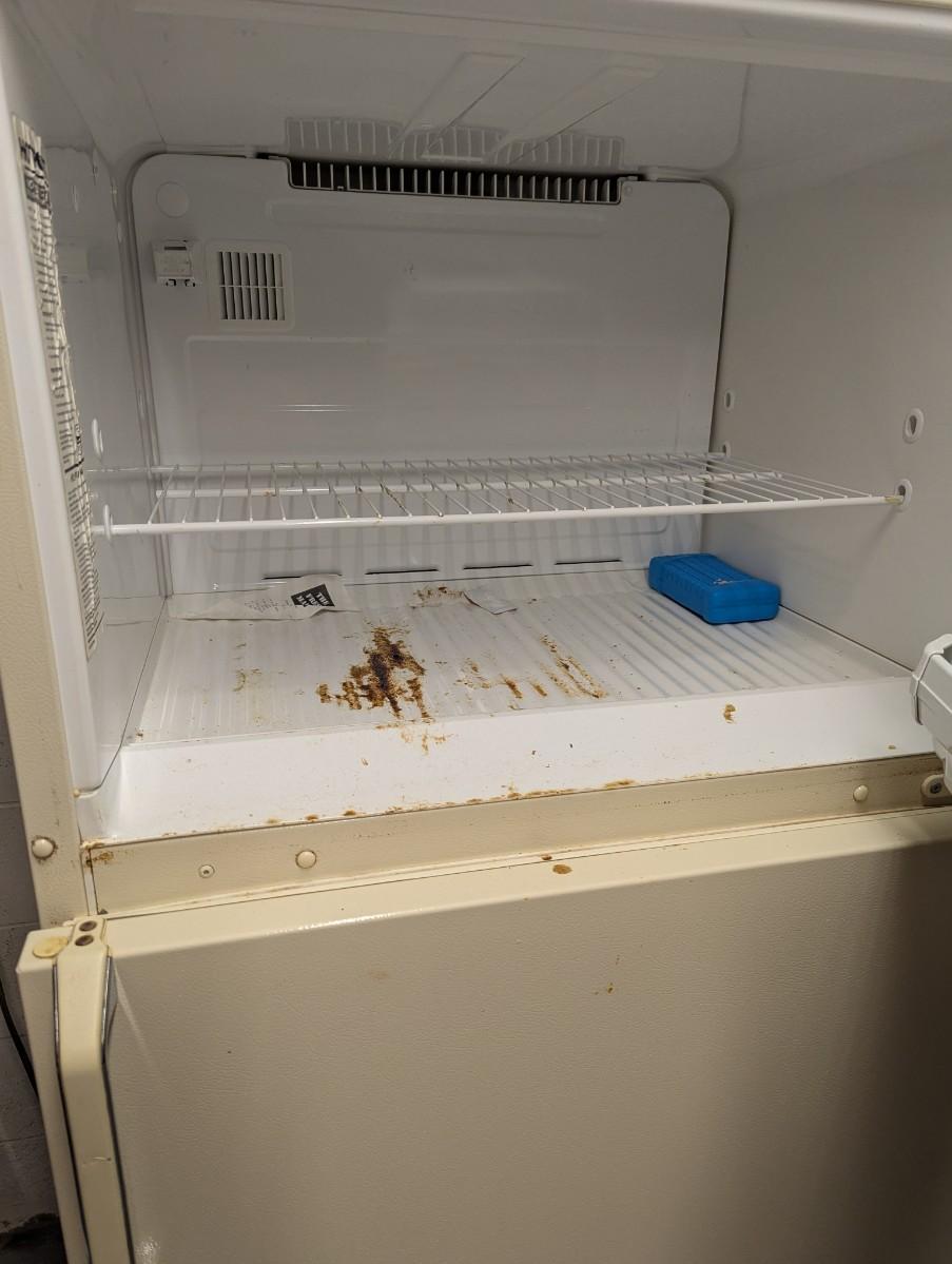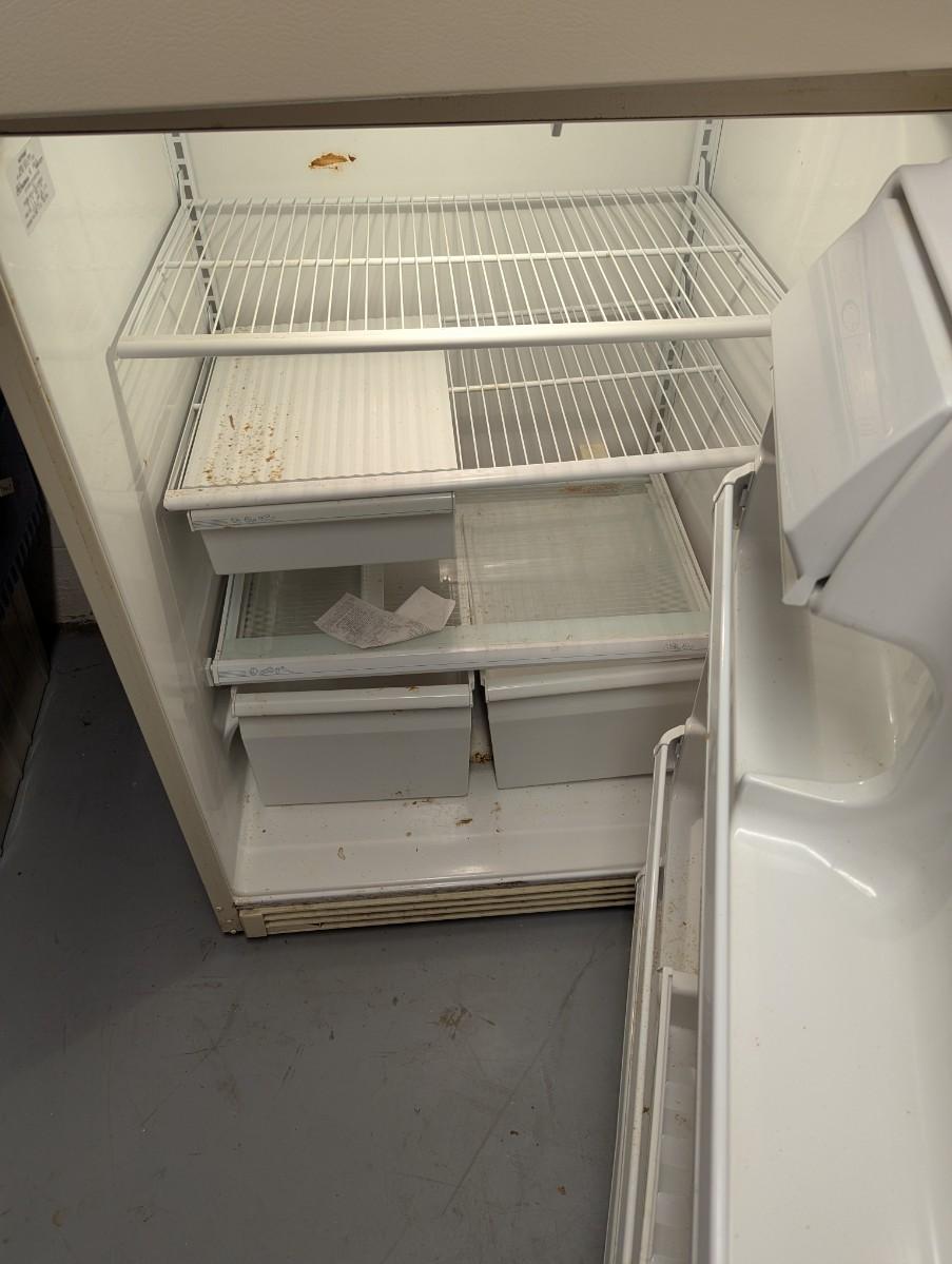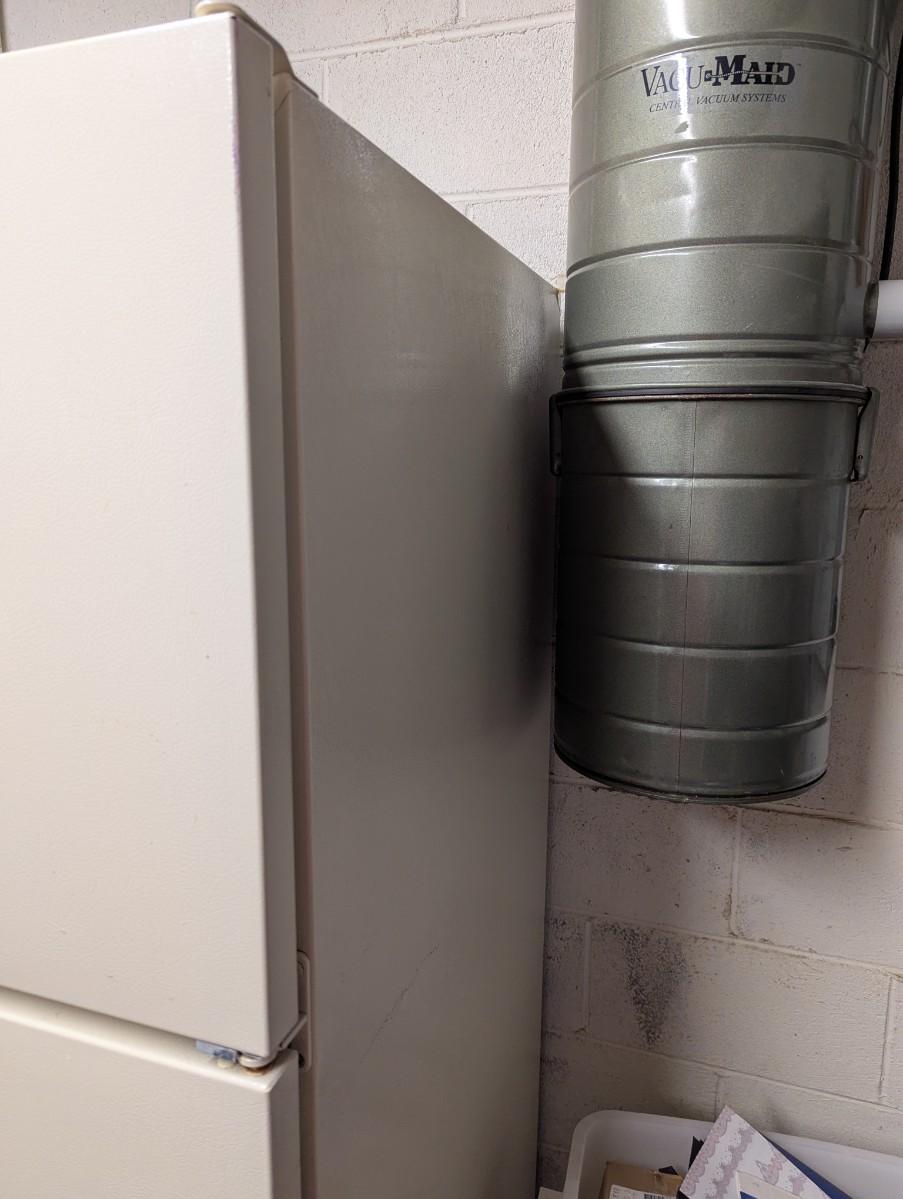 It is down stairs there is a sliding door to go out at the back of the house and go up some stairs to the driveway - does need cleaning - did power on when tested