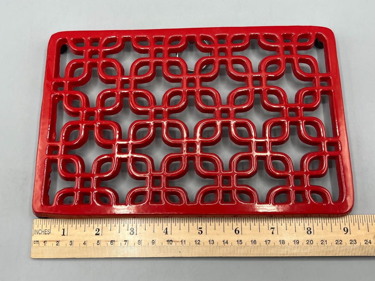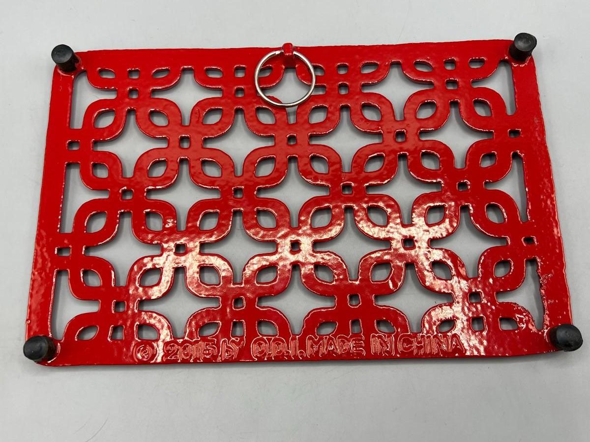 Hot Pot Tea Kettle Holder Red Metal Stand Trivet