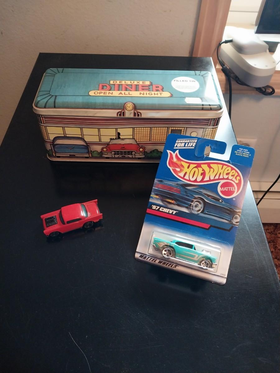 HOT WHEELS '57 CHEVY, DINER TIN AND ANOTHER CAR