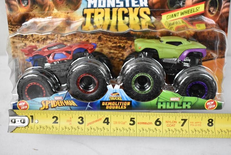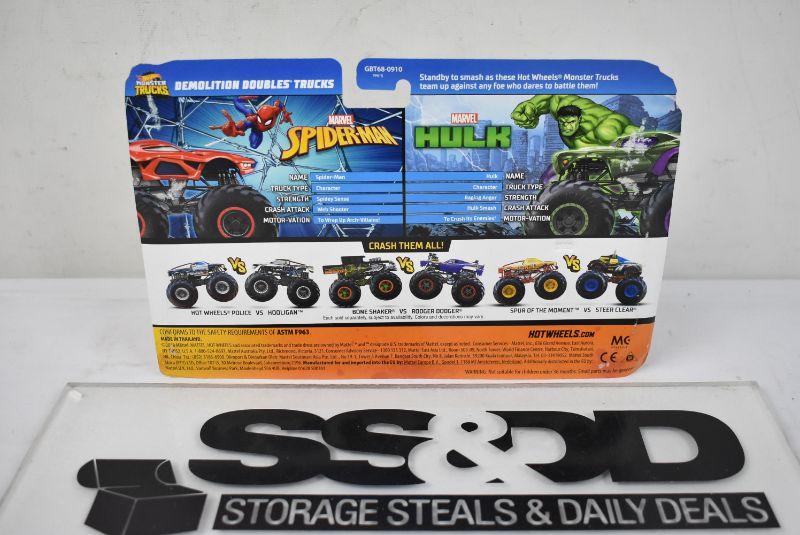 Hot Wheels Monster Trucks Demo Doubles 2-Pack (Spider-Man & Hulk) - New