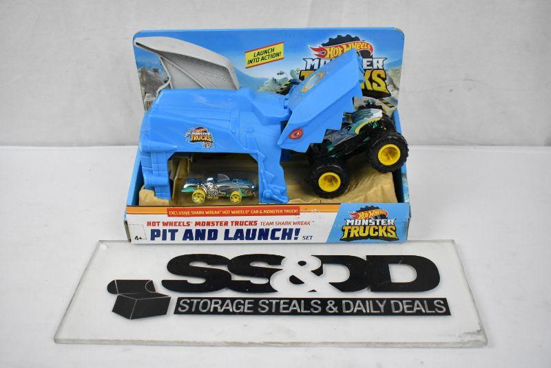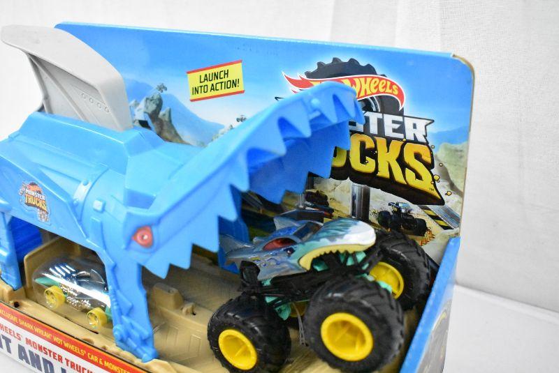 Hot Wheels Monster Trucks Team Shark Wreak Pit & Launch Set - New