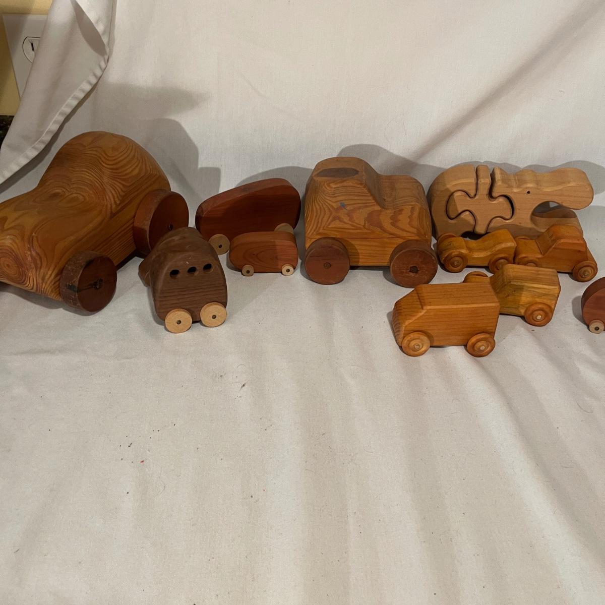 Lot includes over 35 metal die cast cars by Hot Wheels, Majorette and more. Also includes wooden toy cars, Rubik’s cube and other 3D puzzles. Largest wooden toy measures 8” x 6.5” x 5”H.