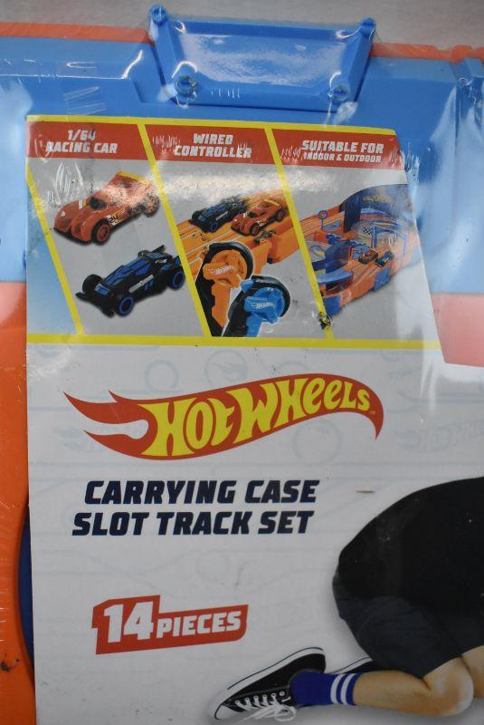 Hot Wheels Slot Track Pack with Carrying Case, Two 164 Cars, and 55 Feet of Track - New