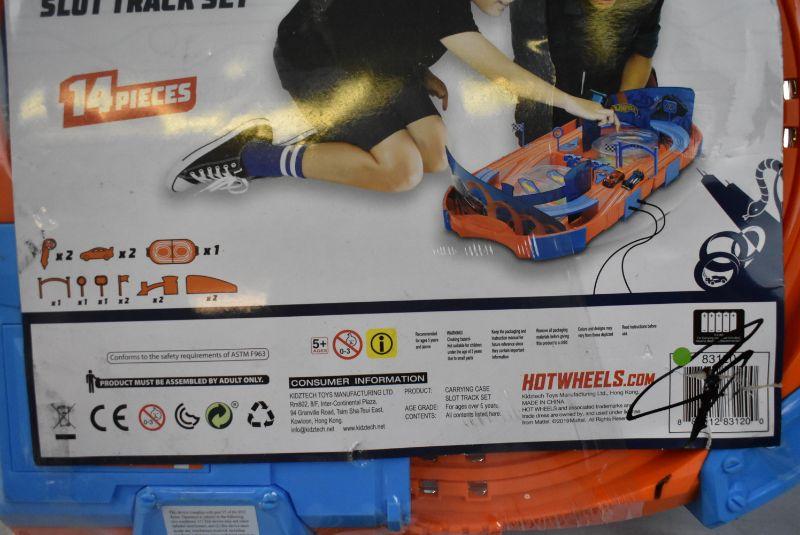 Hot Wheels Slot Track Pack with Carrying Case, Two Cars & 55' of Track - New