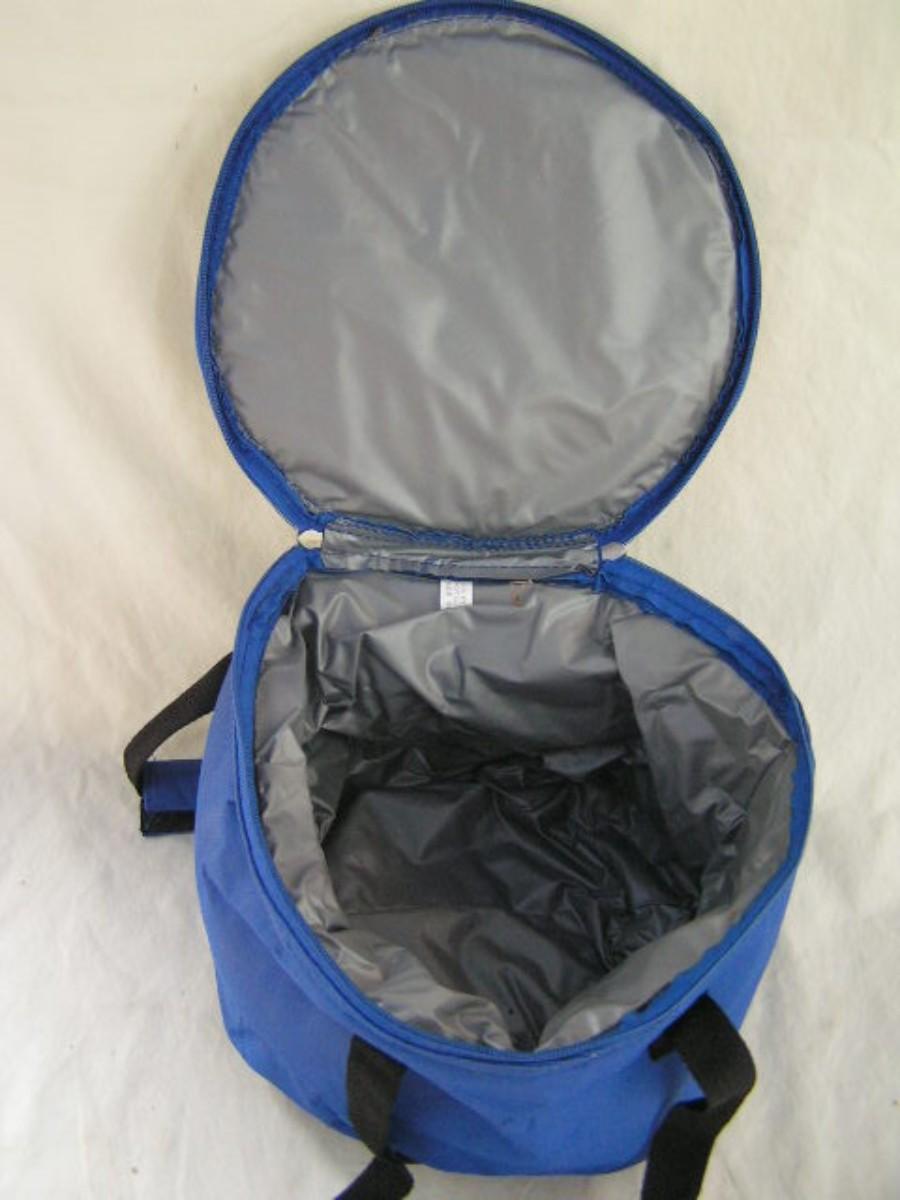 Hot/Cold insulated carry bag w/handles for casserole dish, etc. Zippered top cover. Would hold item up to about 10" diameter & 7" deep.