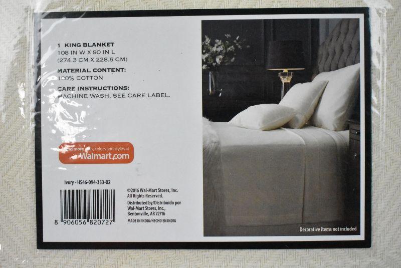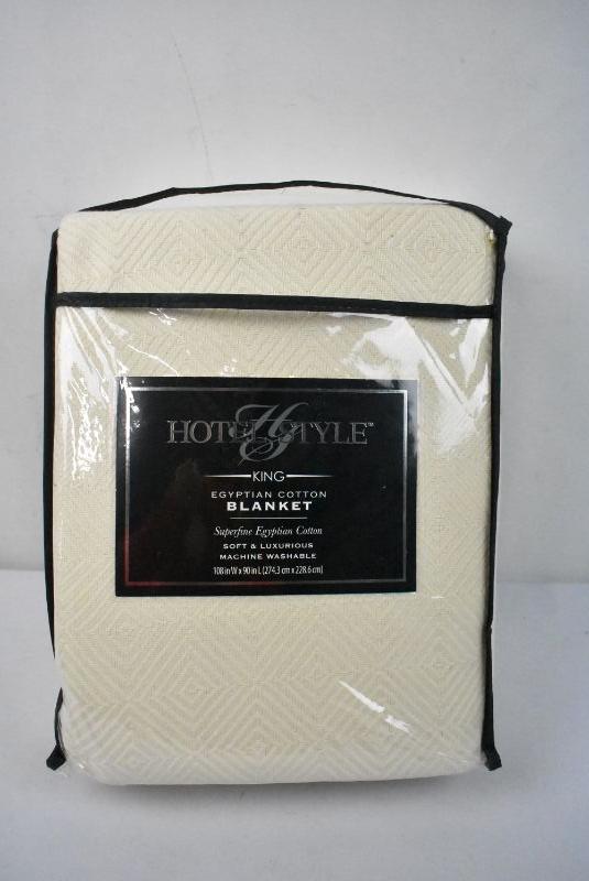 Hotel Style Egyptian Cotton King Size Blanket, Ivory - New