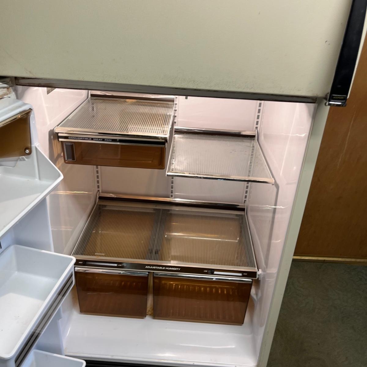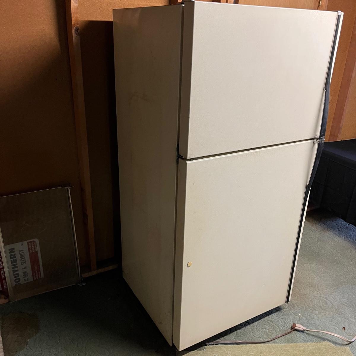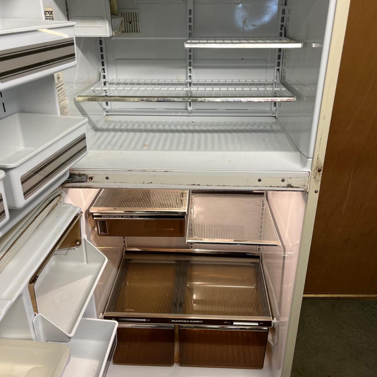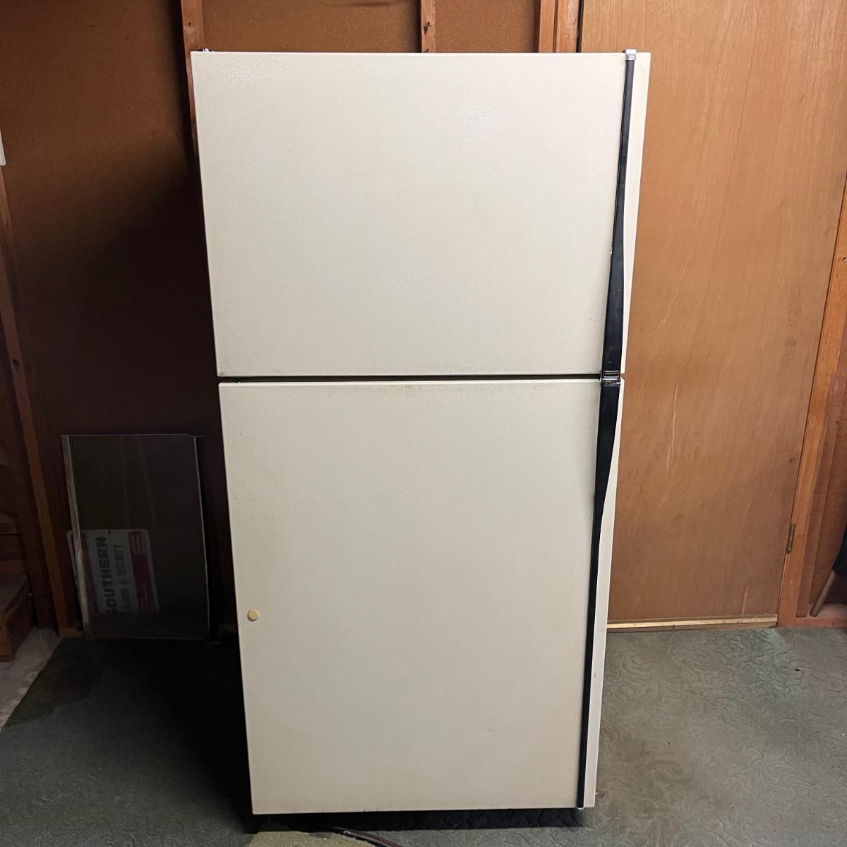 Lot includes a Hotpoint Refrigerator 21.7 cubic foot model # CTG22G. Refrigerator worked when tested. Refrigerator will need to have winning bidder take doors off to get out of basement. Refrigerator measures 31” x 31.5” x 67.5”. Bring help item is substantial.