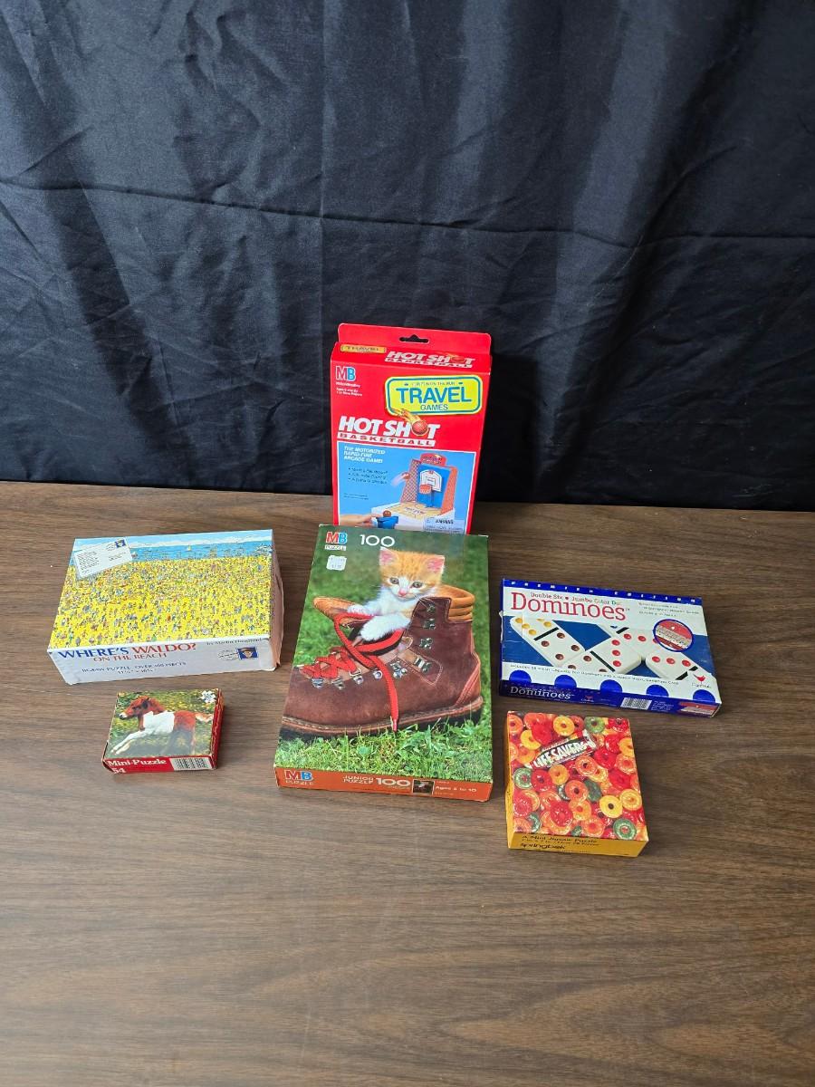 Hotshot Basketball - Where's Waldo on the beach - Dominoes and a few puzzles