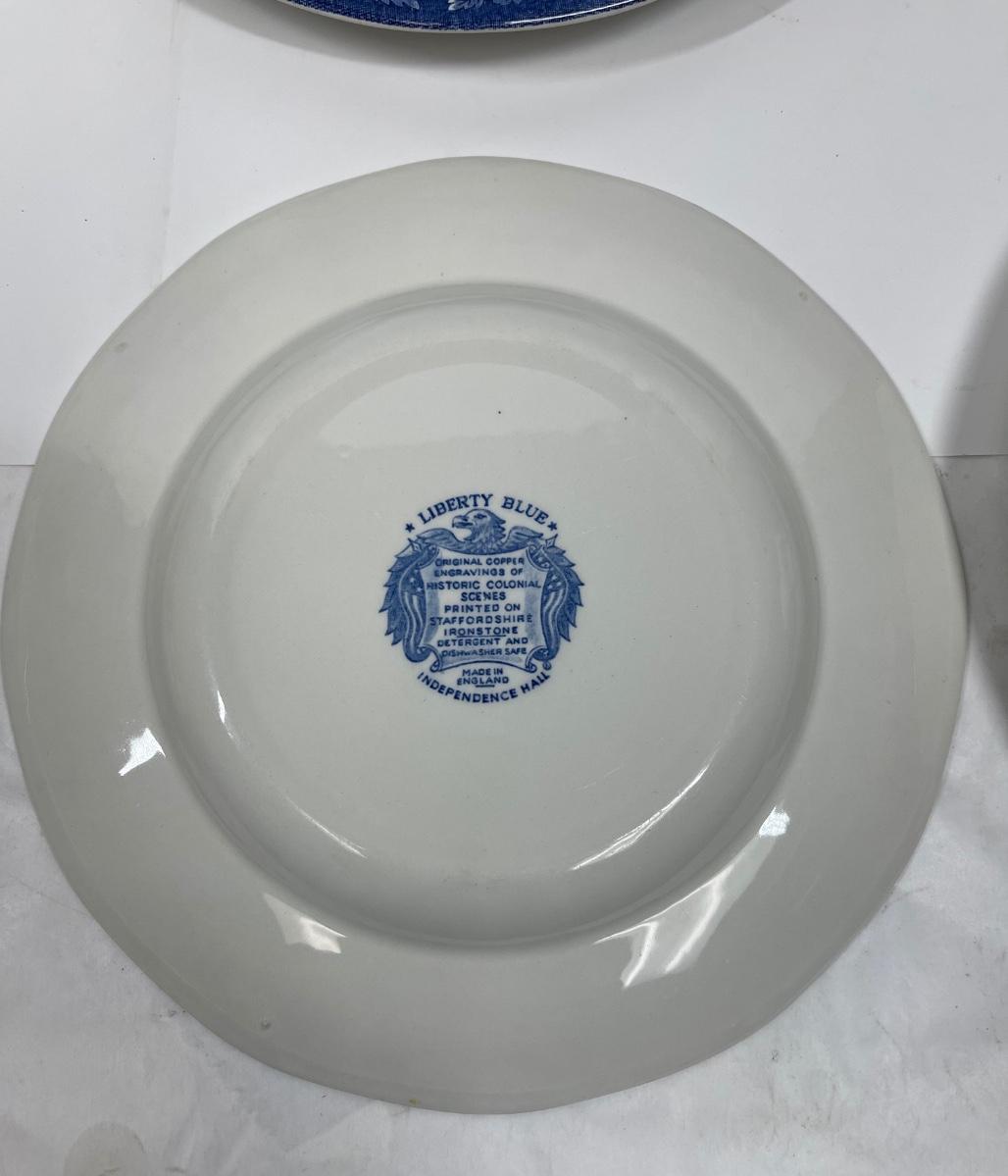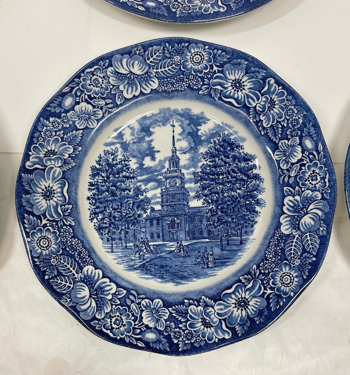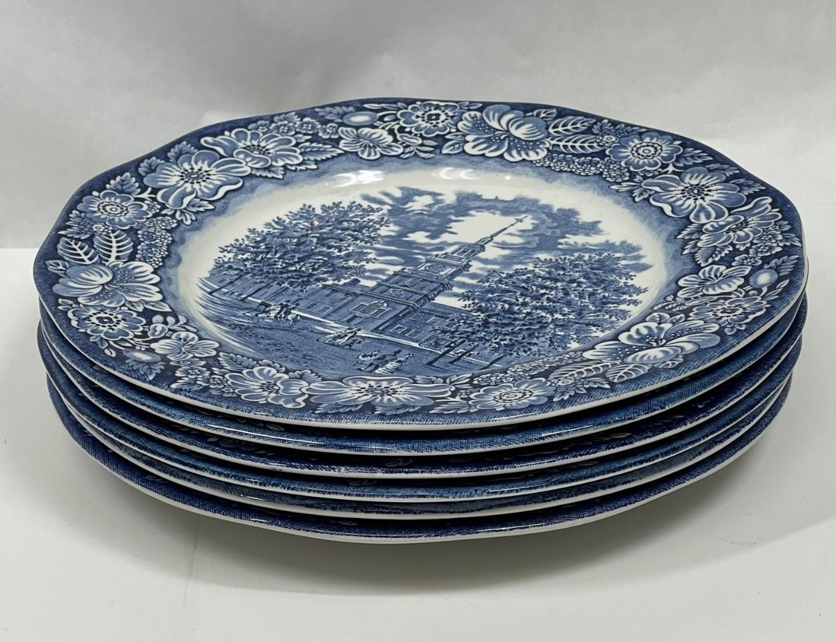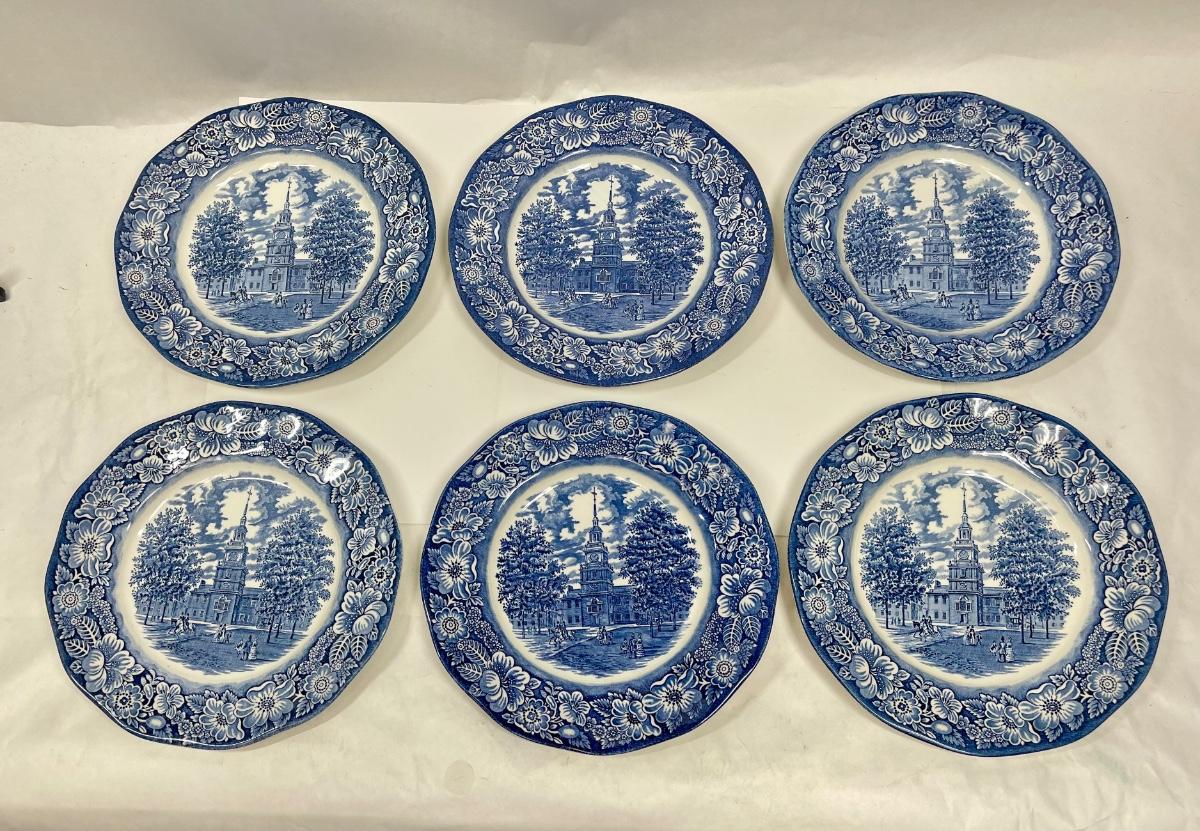 Lot of 6 Vintage Staffordshire Ironstone Liberty Blue Independence Hall Dinner Plate 9.75"