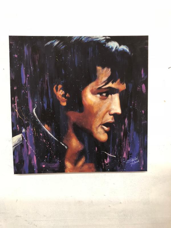 Here is an Elvis Presley portrait...giclee on canvas entitled "Hound Dog" by Stephen Fishwick...24" x 24"....Good condition...