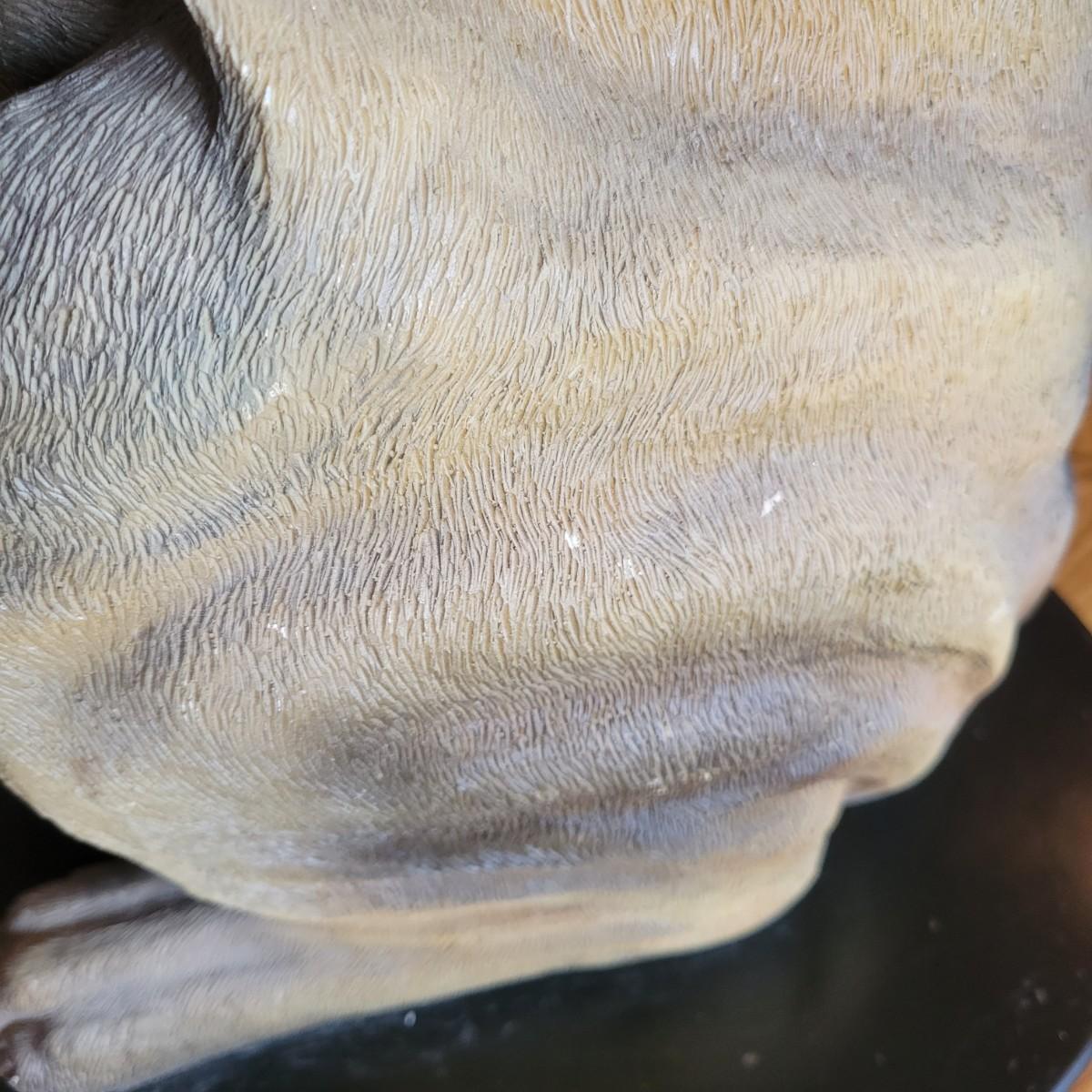 A hound dog holding a serving tray made of poly resin with a black wooden base and tray. He measures approximately 22" x 12" x 33"H. There are some scratches and blemishes. Local pickup only