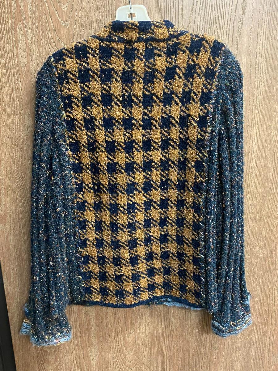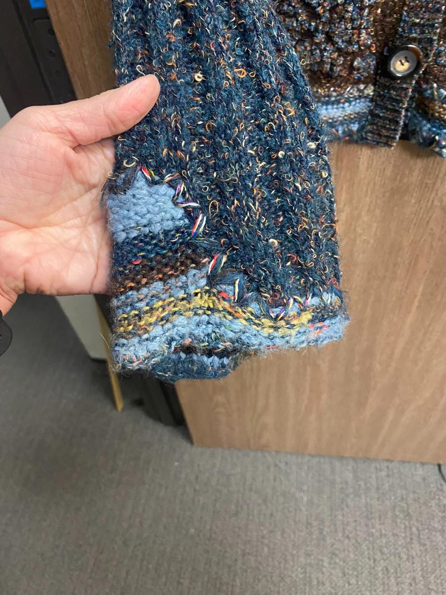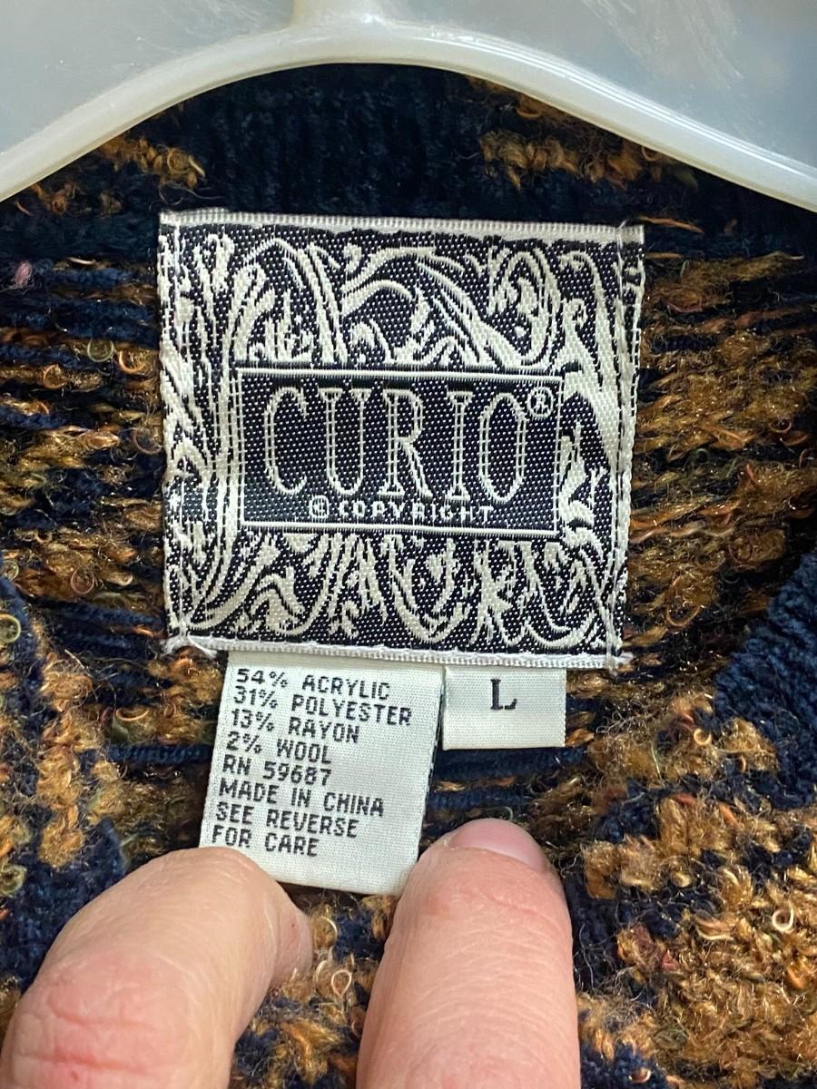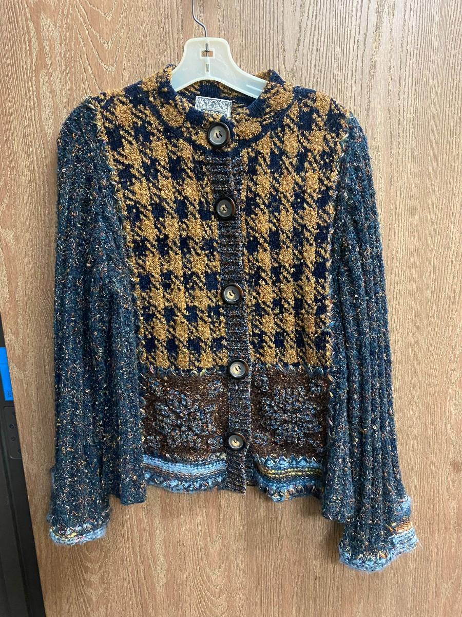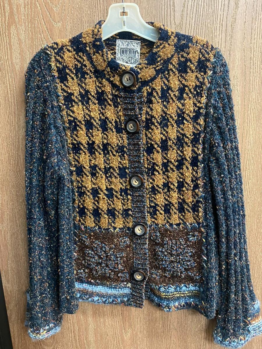 Houndstooth Patchwork Chunky Button Front Sweater Cardigan Curio Size Large. In good condition.