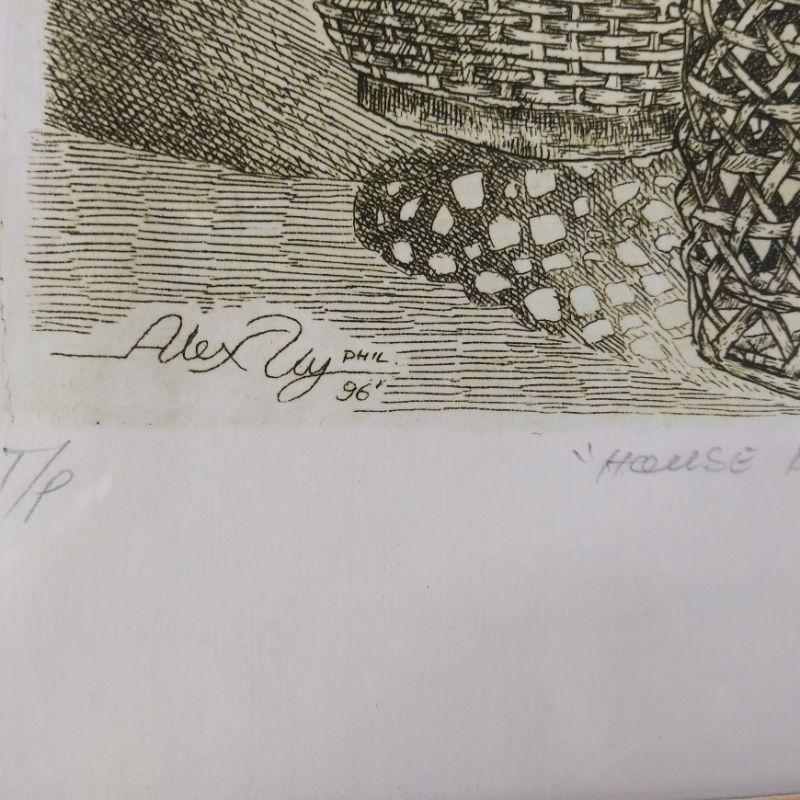This lot is for a Signed Etching by Alex Uy. Marked A/P. Done in olive-colored ink. Framed 15-inches wide X 14-inches tall. Very nice and ready to hang. Local Pick-Up ONLY!