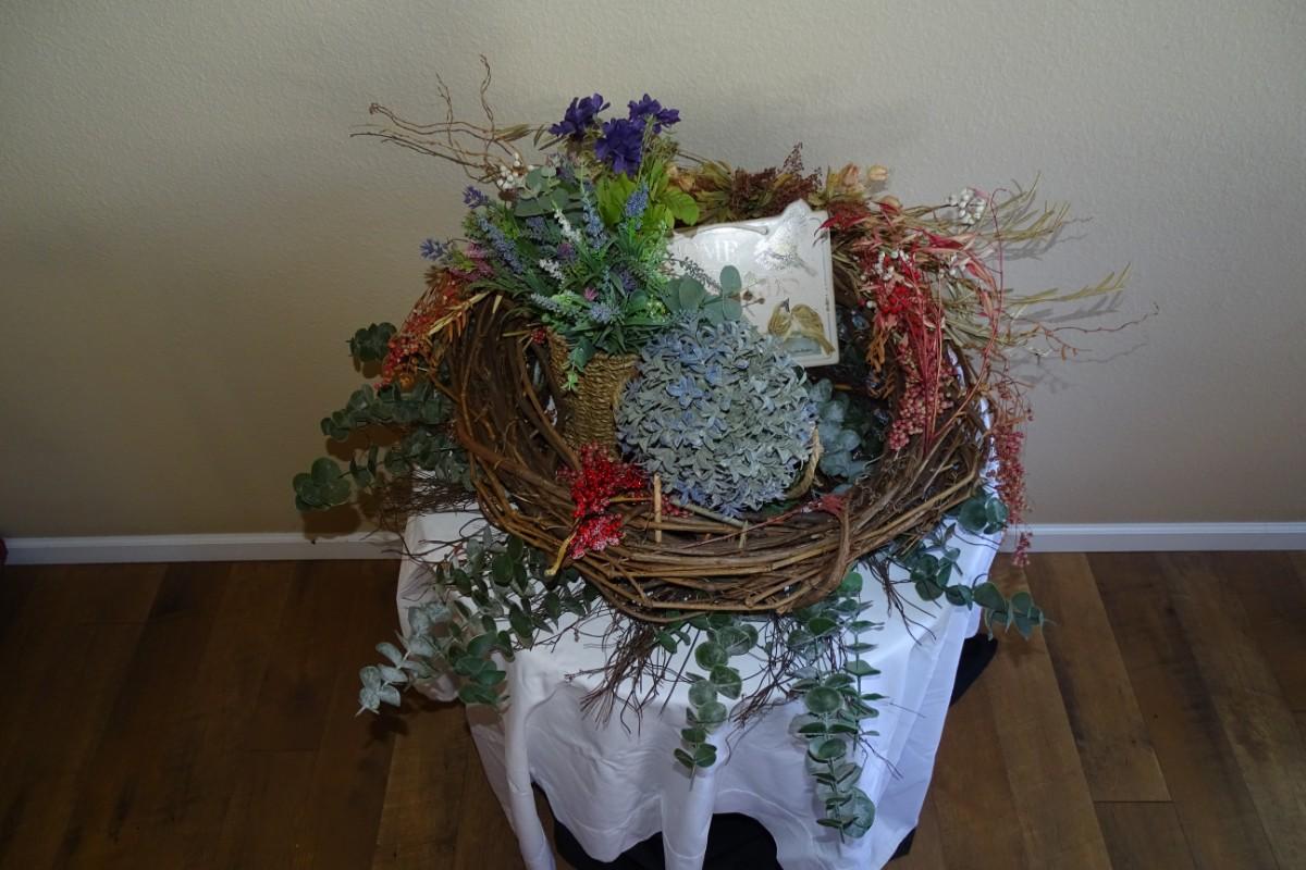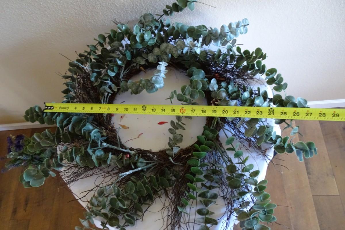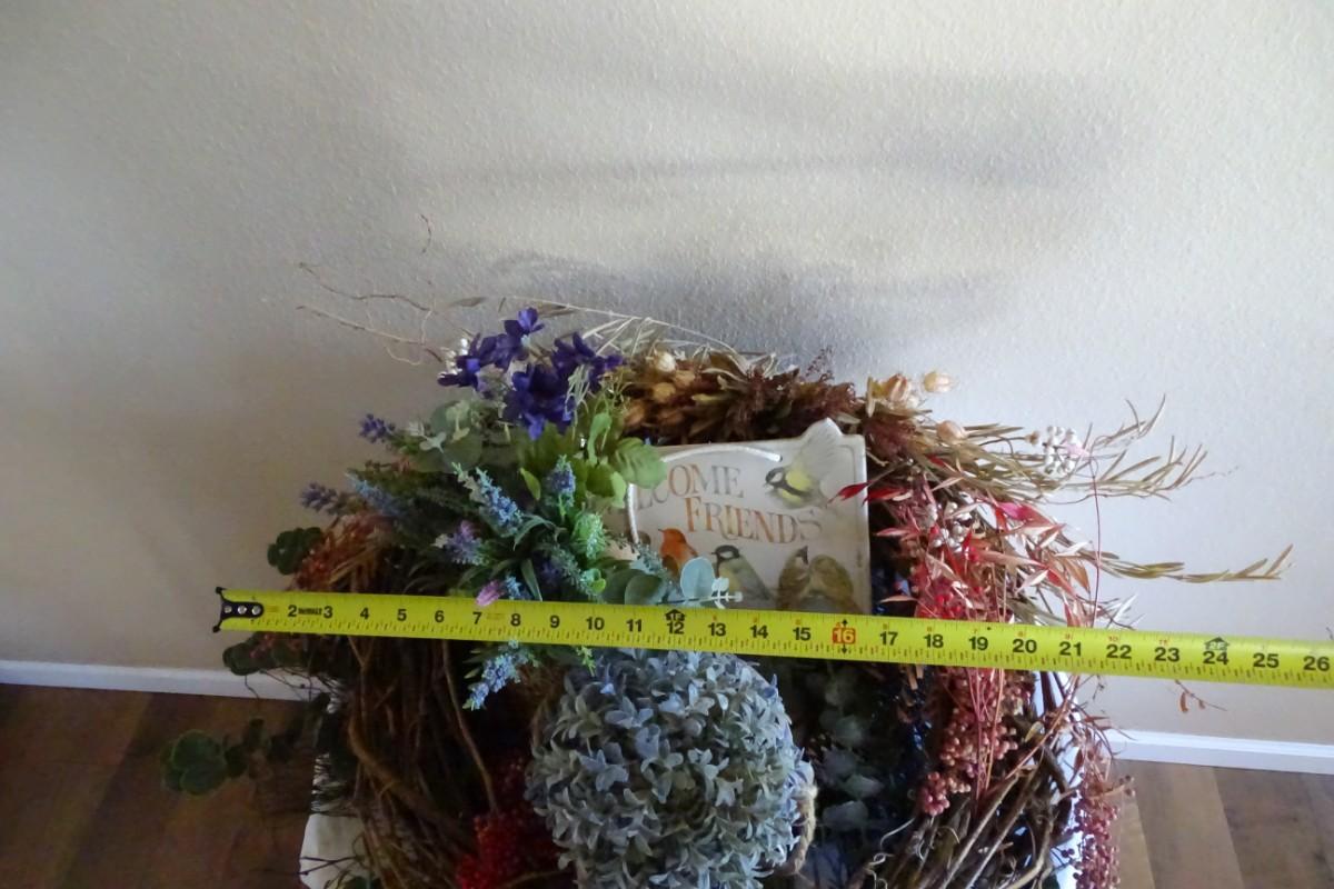 Lot of House Décor: x2 Wreaths, Placard and Fake Floral Arrangements