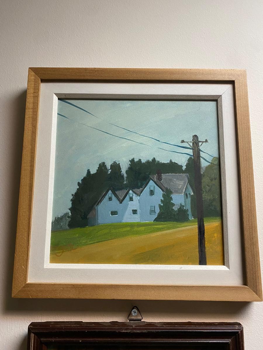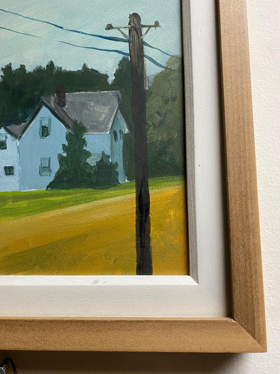 Framed and matted Summery themed stark house with telephone pole scene. 13" x13" square