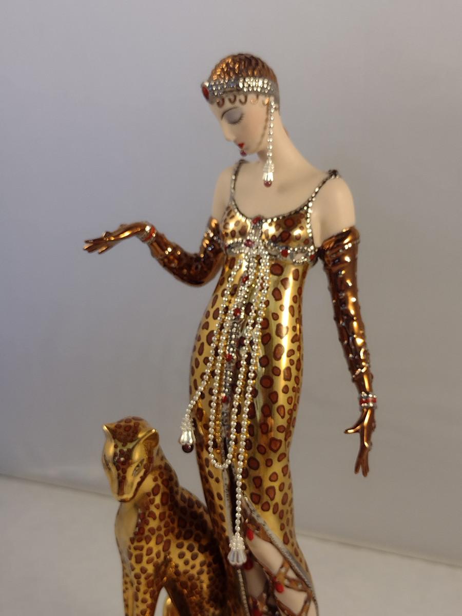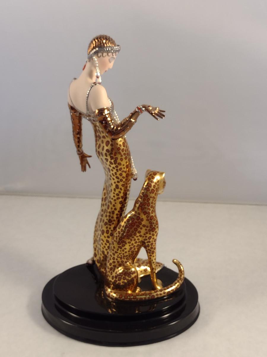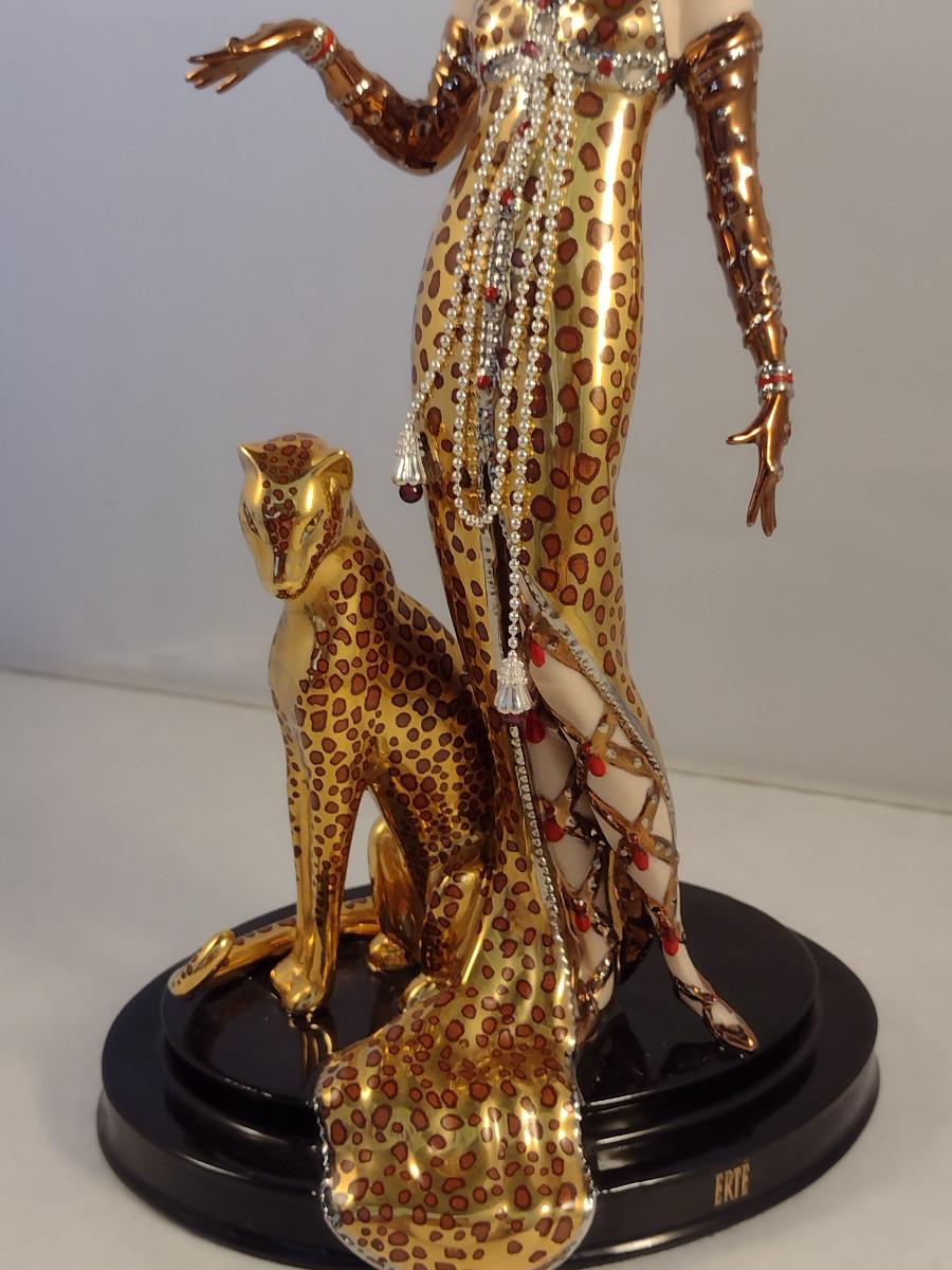 House of Erte Numbered, Limited Edition, Hand Painted Porcelain 'Ocelot' Art Deco Figurine- No. M3918