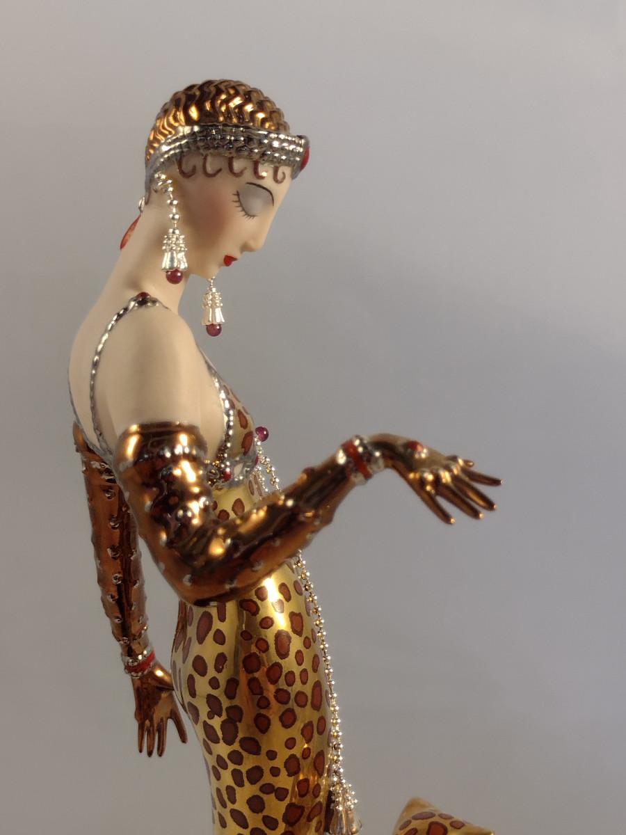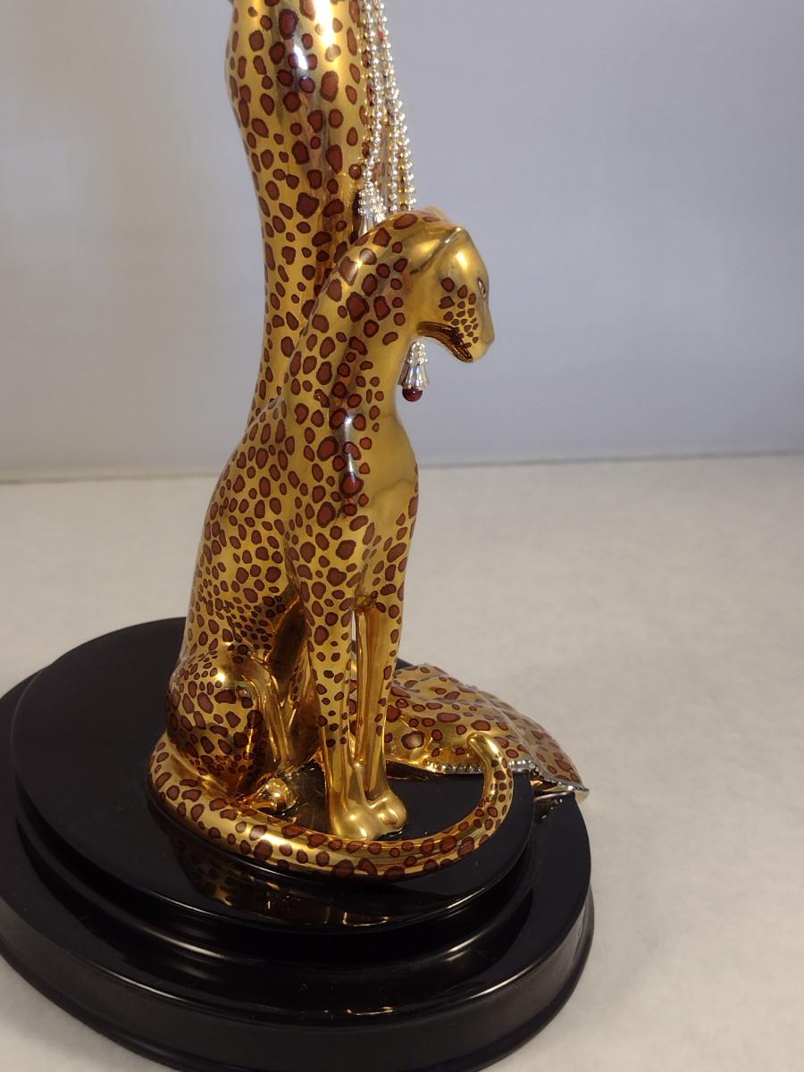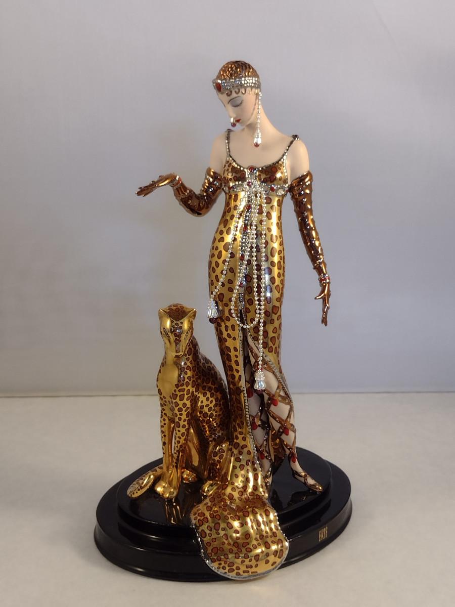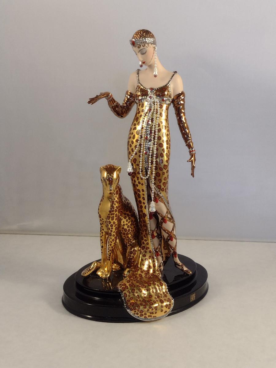 House of Erte Numbered, Limited Edition, Hand Painted Porcelain 'Ocelot' Art Deco Figurine- No. M3918