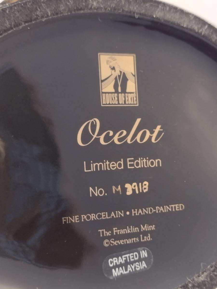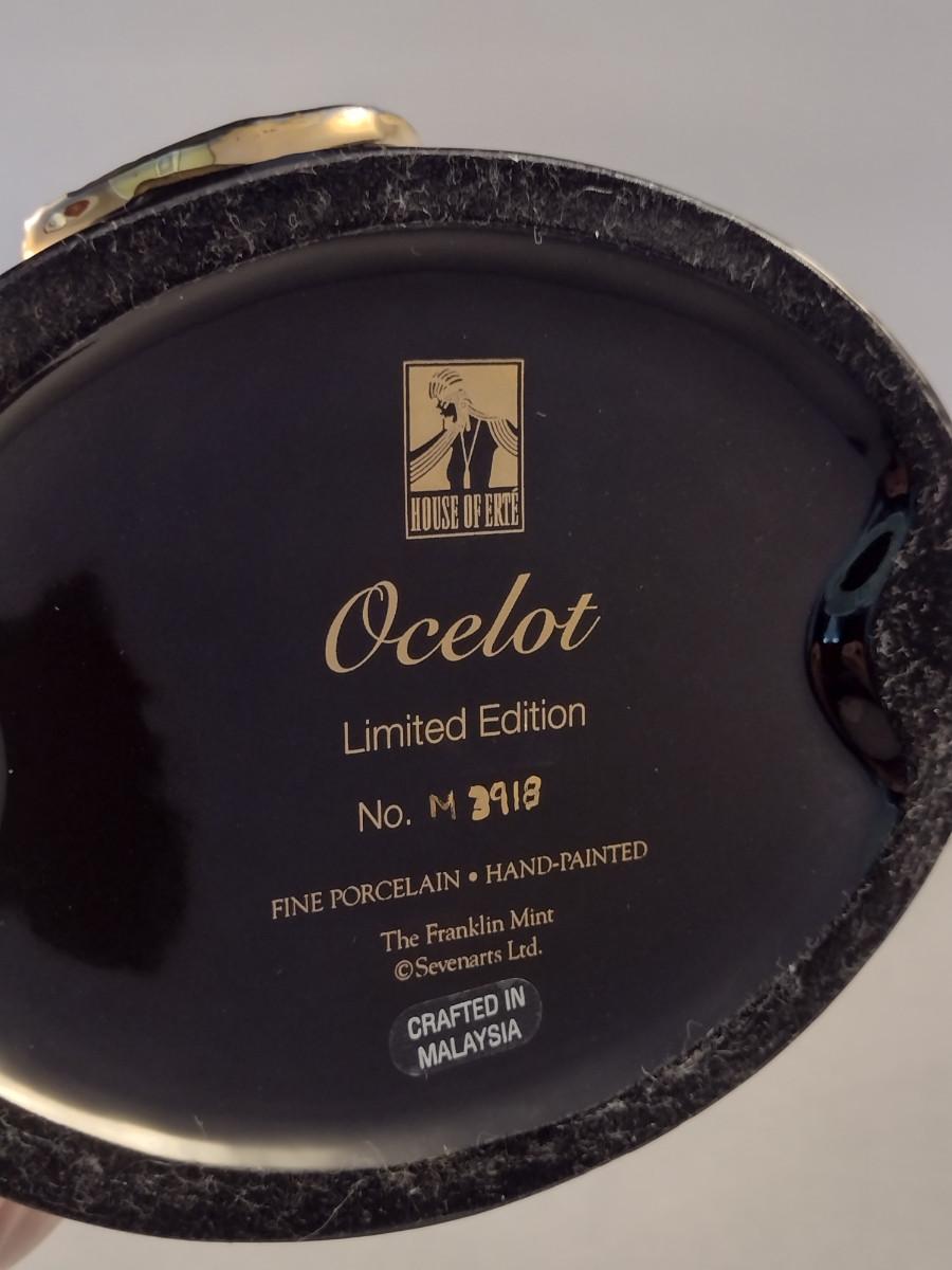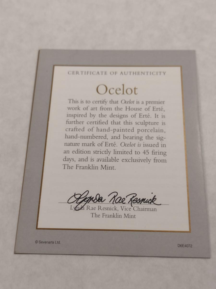 House of Erte Numbered, Limited Edition, Hand Painted Porcelain 'Ocelot' Art Deco Figurine- No. M3918. Part of a collection released by Franklin Mint. Figurine stands approx 8 7/8" tall and comes with COA. No noticeable chips or cracks. Appears to be in good condition. Item will be available for third party packing and shipping only.